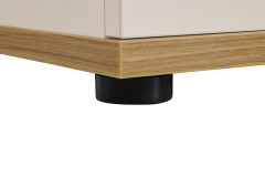 Deckplatten, Griffe, Sockel, Bettpfosten, Bettseiten: Die Lebensgeschichte eines Baumes prägt seine typischen Wuchsmerkmale, wie Zeichnung, Struktur und Farbe, denn kein Baum gleicht dem anderen. Deshalb kann es bei der Verwendung von Echtholz zu Farb- und Strukturdifferenzen bei den einzelnen Möbelstücken kommen. Bei Echtholz sprechen diese naturbedingten Eigenschaften für die Einzigartigkeit des Holzes. Dies ist kein Grund für eine Reklamation oder Beanstandung.