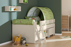Tiago | Kojenbett mit Schutzseiten, Leiter & Baldachin