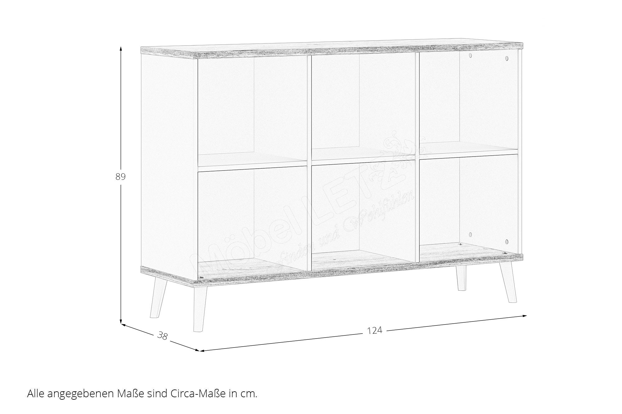 - Sideboard: 6 offene Fächer