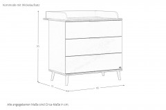 - Wickelkommode: 3 Schubkästen, Wickelaufsatz abnehmbar, Wickelfläche ca. 84,2 x 67,7 cm,