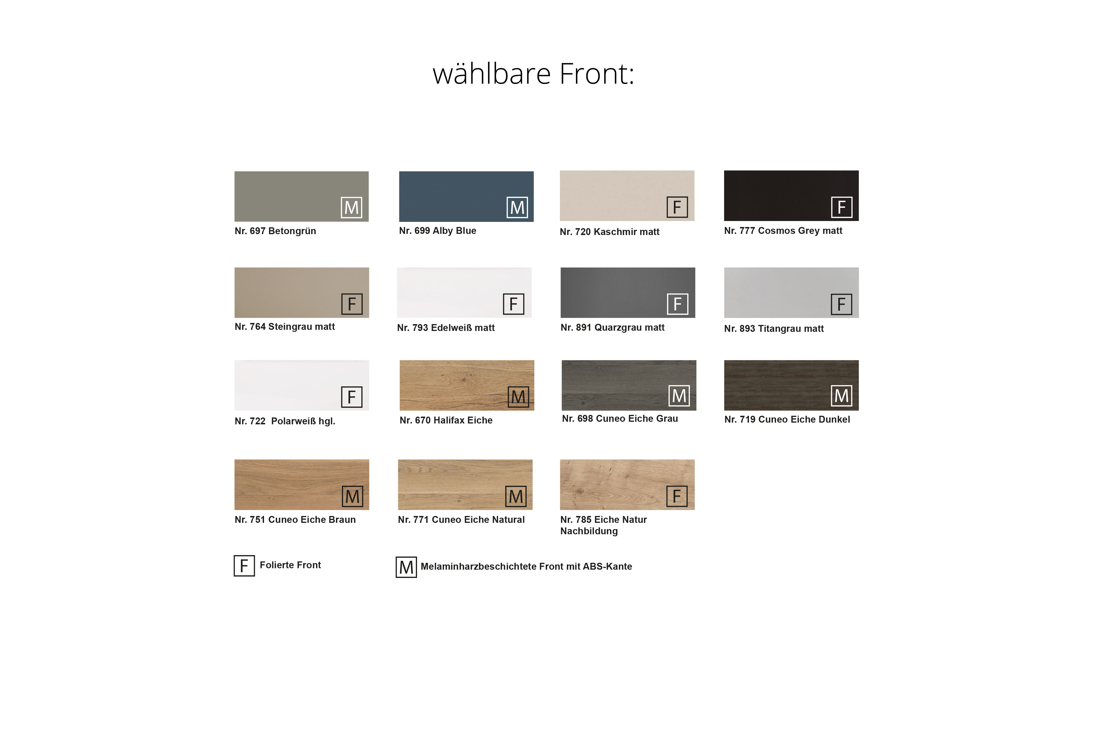 - Front/ Korpus: Titangrau, Foliert mit ABS-Kante