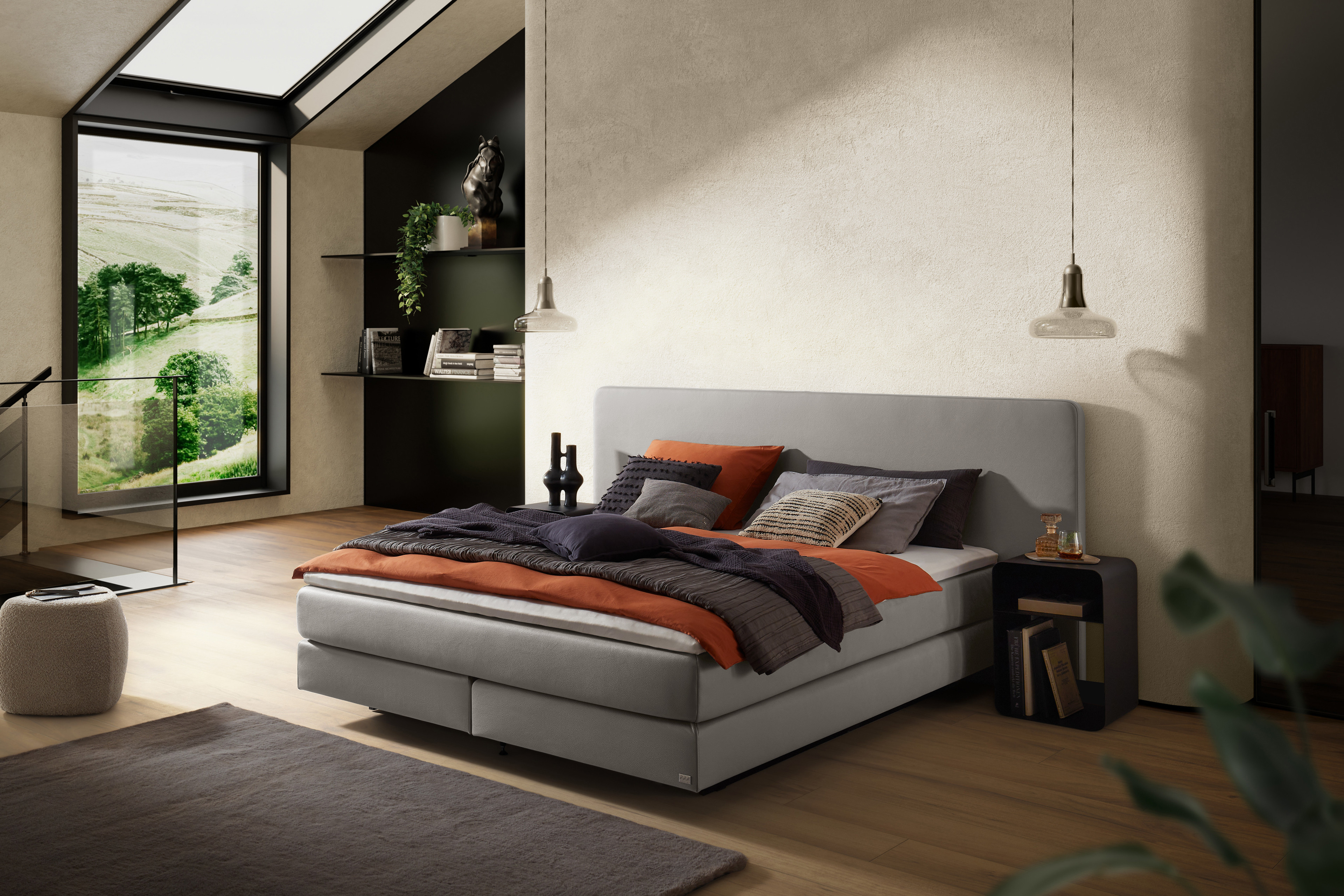 Ein morgendliches Gefühl, welches schöner nicht sein könnte - Sie erwachen aus einem geruhsamen Schlaf und haben einen einzigartigen Ausblick auf die schönste Landschaft. Noch dazu kommt, dass Sie solch ein bequemes Bett haben, dass Ihr Körper vollkommen erholt ist - dies kann Ihnen das Boxspringbett Clara von Hasena Comfort garantiert bieten. Es beginnt bereits im Untergestell, das durch die 7-Zonen-Taschen-Federkerne einen hohen Komfort aufweist. Die gemütliche Matratze können Sie optional getrennt voneinander, als durchgehende Variante oder als Partnermatratze mit zwei Kernen in einem Bezug erhalten - es wird Ihnen auch die Möglichkeit geboten, unterschiedliche Härtegrade zu wählen. Um dem Ganzen noch die Krone aufzusetzen, finden Sie unter unseren Zusatzoptionen verschiedene Toppervarianten, sodass Sie jede Nacht als unvergesslich empfinden werden. Die Ausführung, welche wir im Grundangebot vorschlagen, besteht, aus einem angenehmen Microfaser in einem sanften Grauton und wird durch die geschmackvolle Fußausführung mit seitlichen Holzkufen in Eiche graphit abgerundet. Selbst in diesem Punkt steht Ihnen über unsere Bezugswahl frei, für welche Ausführung Sie sich entscheiden, um das Boxspringbett an das Design Ihres Schlafzimmers anzupassen. Gern können Sie auch die entzückende Nachtkonsole dazubestellen, die in einem kontrastreichen Schwarz erhältlich ist und somit zusammen eine bezaubernde Kombination ergibt. Boxspringbetten von Hasena sind traumhaft schön und bringen den Körper und den Geist in Einklang.