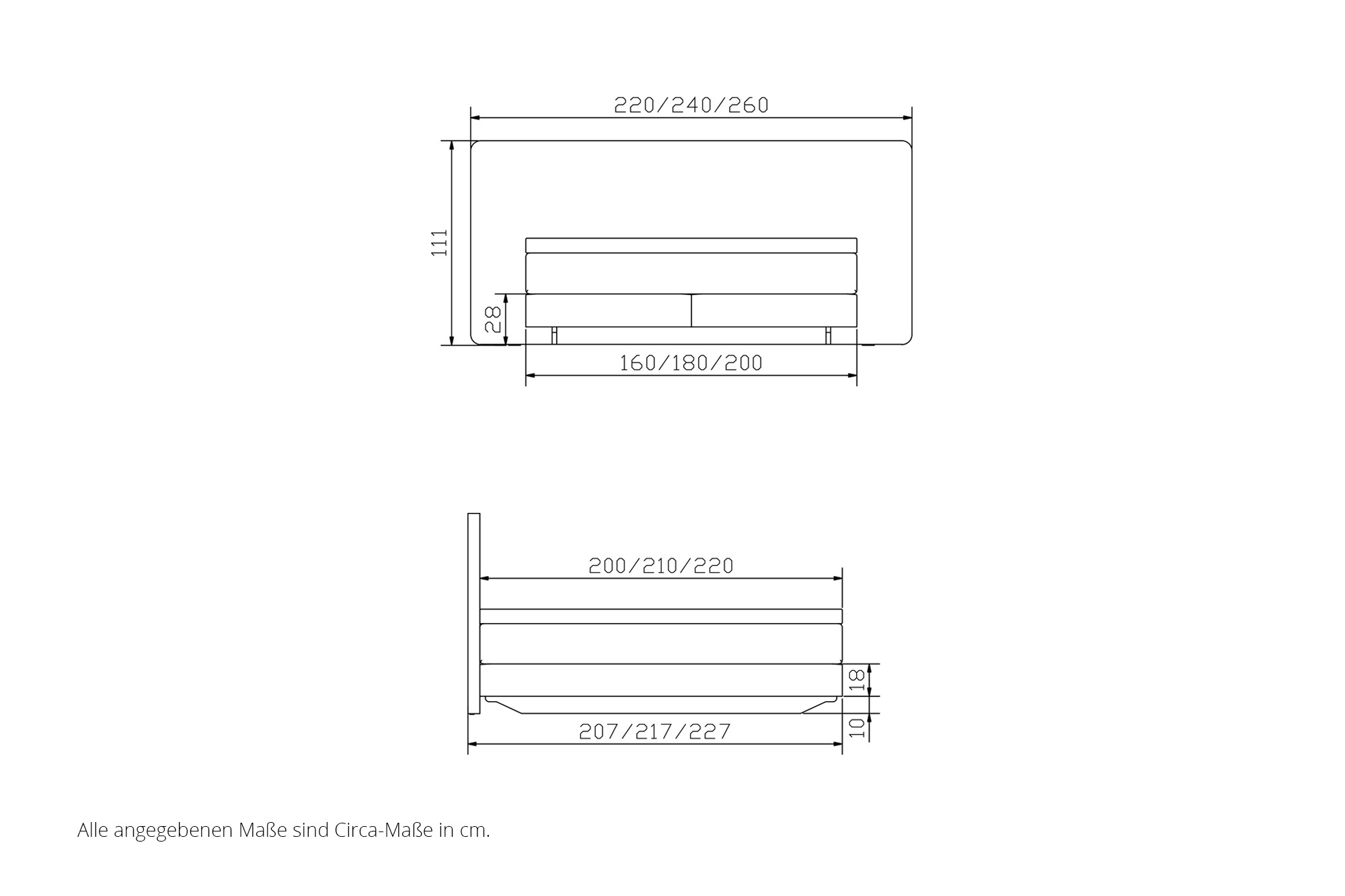 Hinweis! Auch in den Überlängen ca. 210 cm und ca. 220 cm erhältlich. - wählbare Boxausführung: