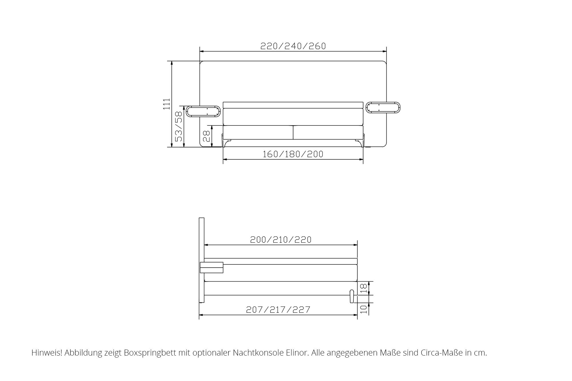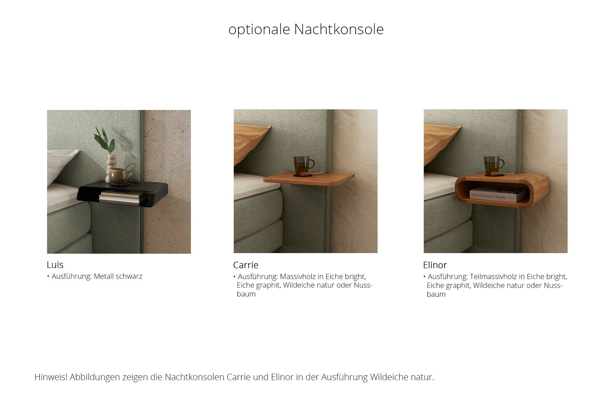 Hinweis! Zur Unterstützung des Liegekomforts ist ein Topper empfehlenswert. - optionale Nachtkonsole: