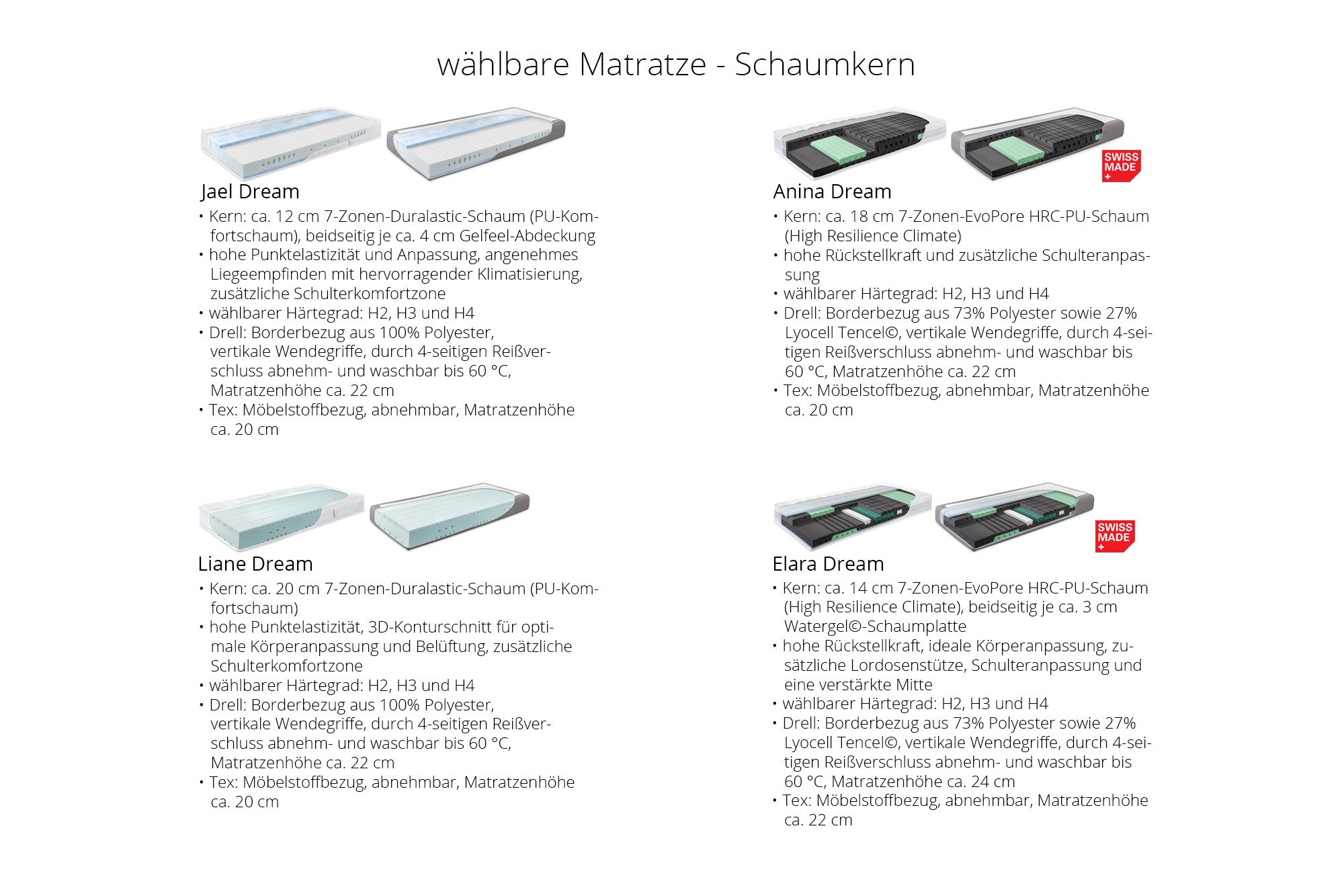 Hinweis! Der Bezug der Stoffmatratzen passt sich der gewählten Bezugsauswahl des Untergestells / Kopfteils an.