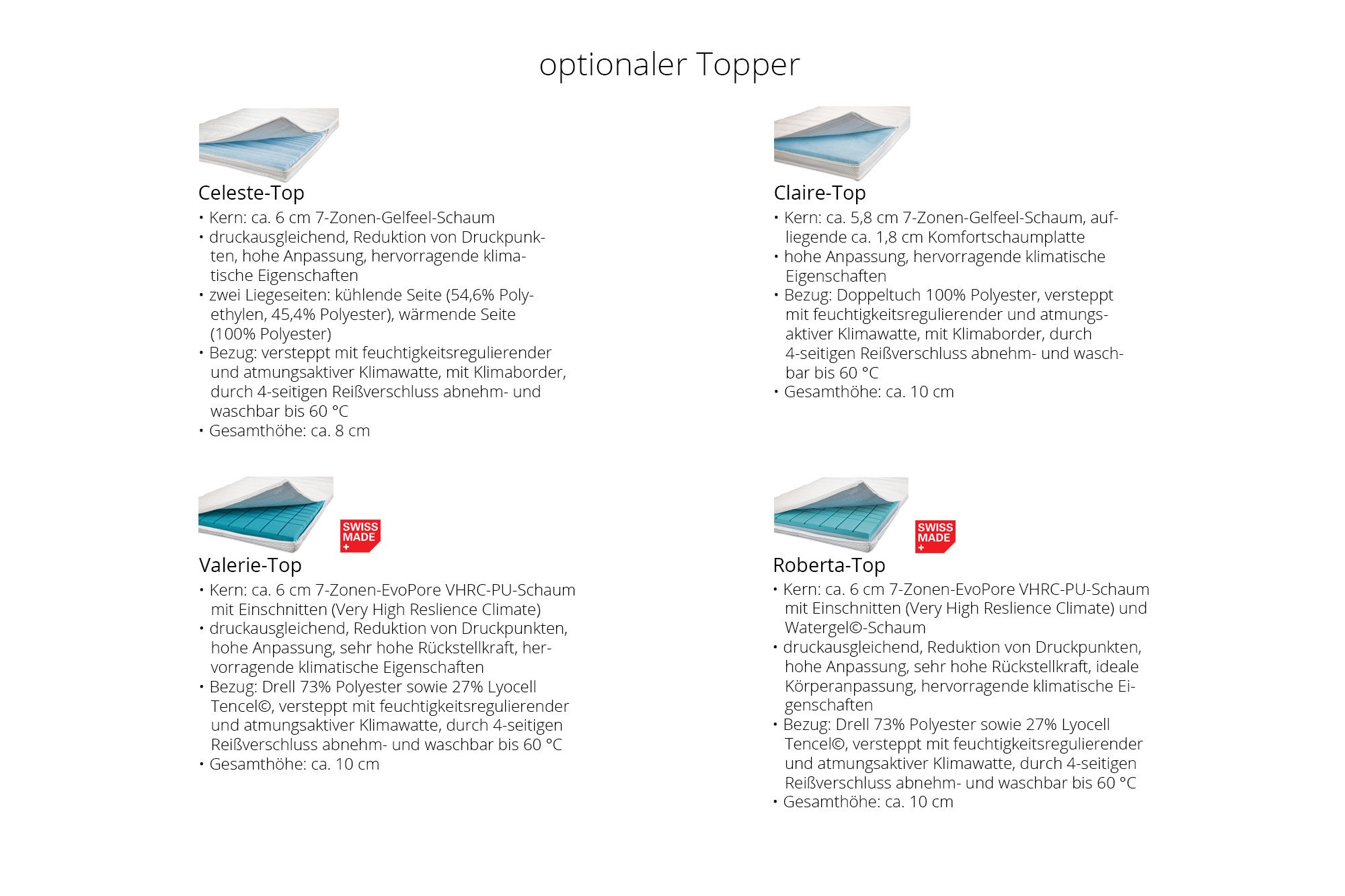 Hinweis! Die Topper sind wahlweise durchgehend oder geteilt erhältlich.