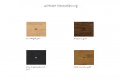 Massivholz in Eiche bright, geölt; Eiche graphit, gebürstet, geölt; Wildeiche natur, geölt oder Nussbaum, geölt - wählbar in den Höhen ca. 10 cm oder 15 cm