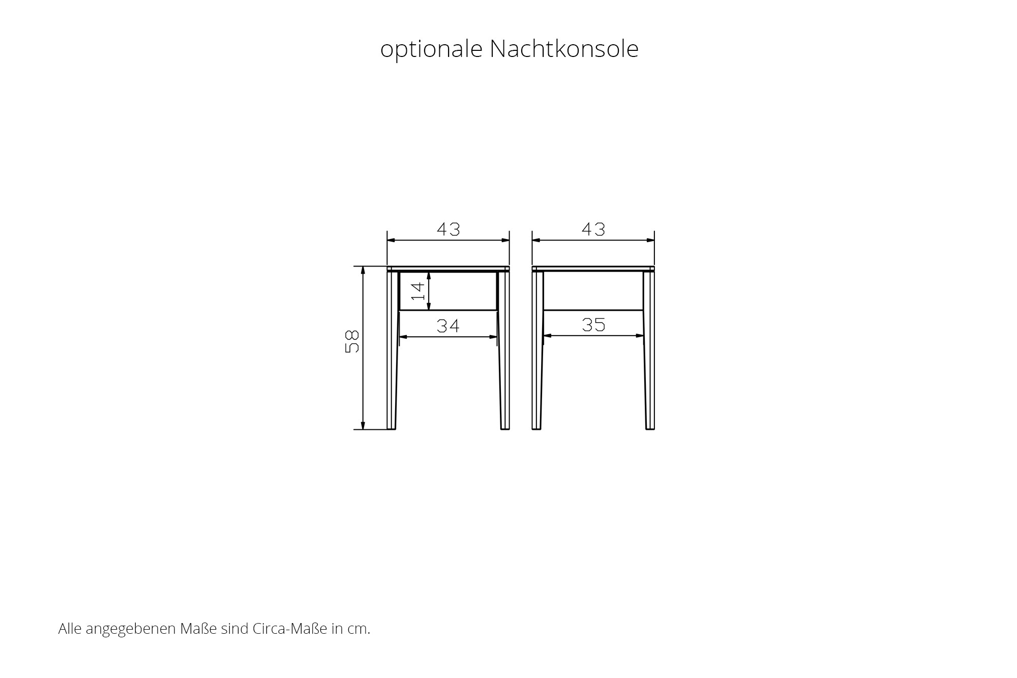 Hinweis! Zur Unterstützung des Liegekomforts ist ein Topper empfehlenswert. - optionale Nachtkonsole: