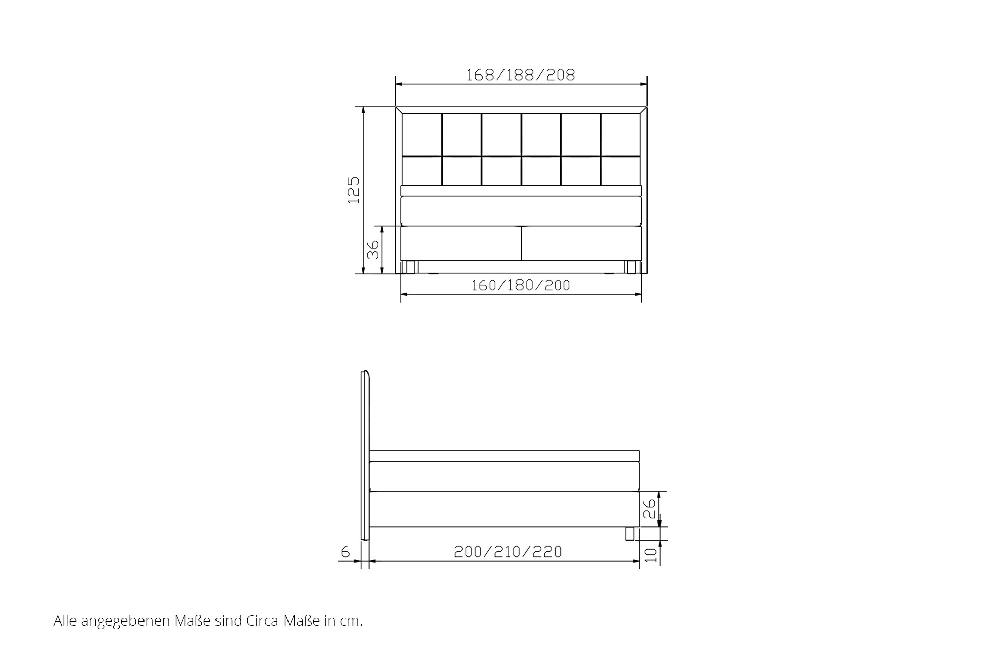 Hinweis! Auch in den Überlängen ca. 210 cm und ca. 220 cm erhältlich. - wählbare Boxausführung: