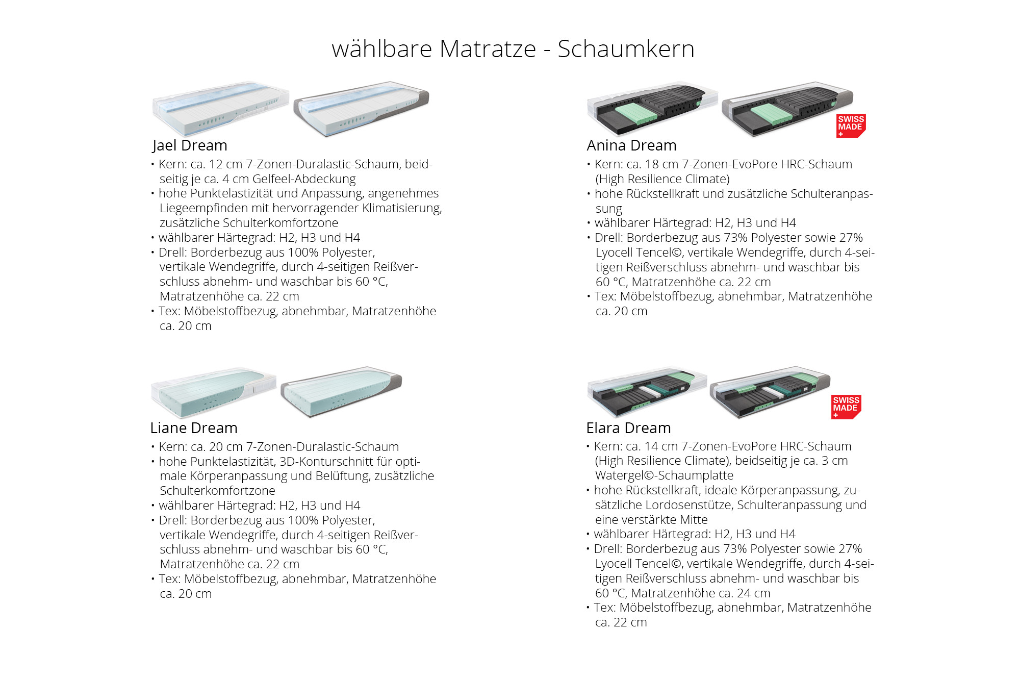 Hinweis! Der Bezug der Stoffmatratzen passt sich der gewählten Bezugsauswahl des Untergestells / Kopfteils an.