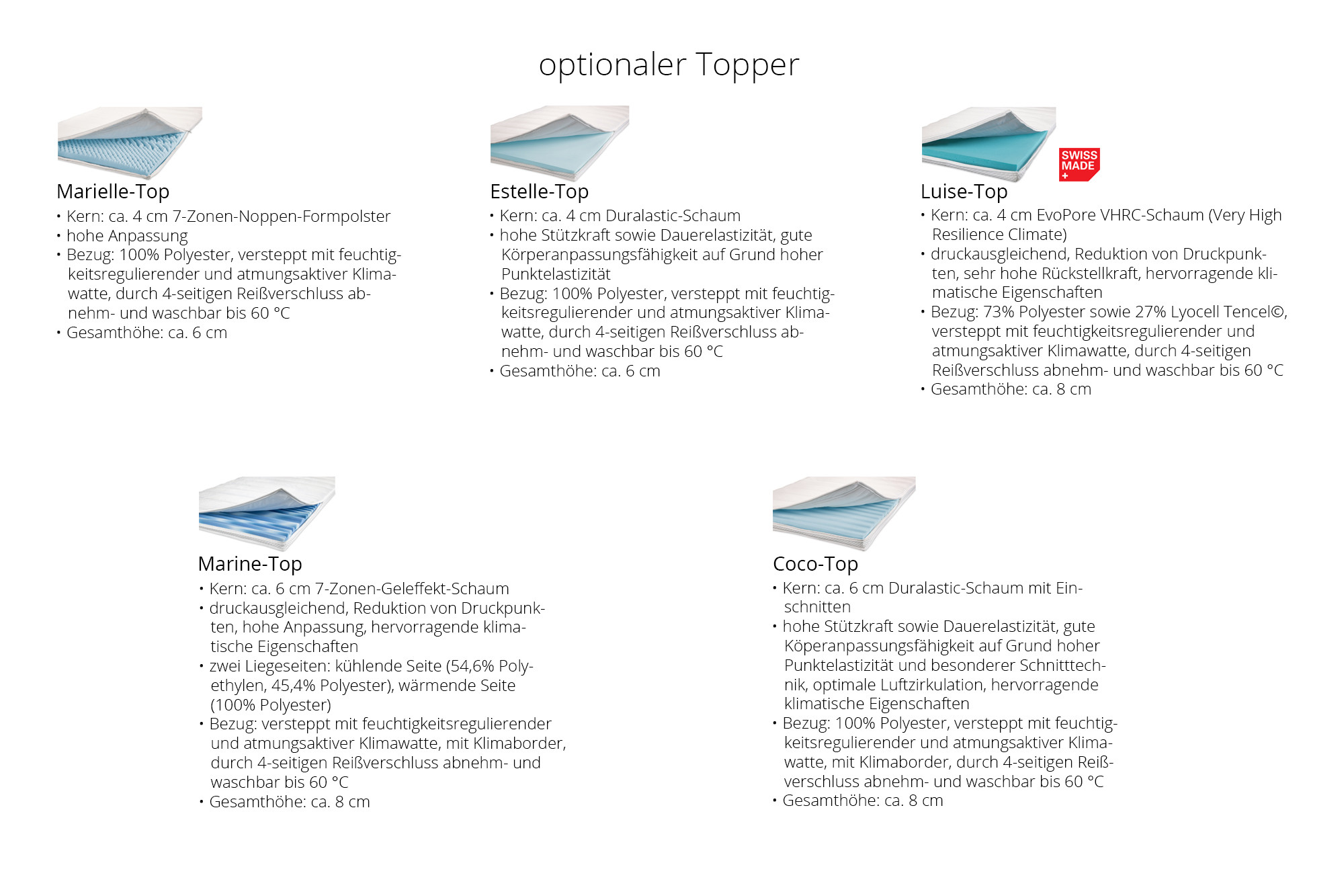 Hinweis! Die Topper sind wahlweise durchgehend oder geteilt erhältlich.