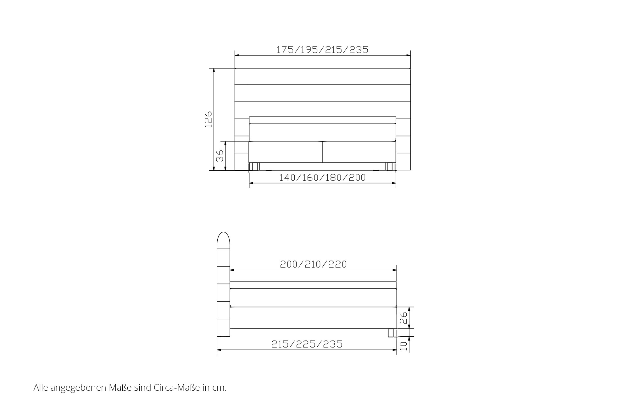 Hinweis! Der Bezug der Stoffmatratzen passt sich der gewählten Bezugsauswahl des Untergestells / Kopfteils an.