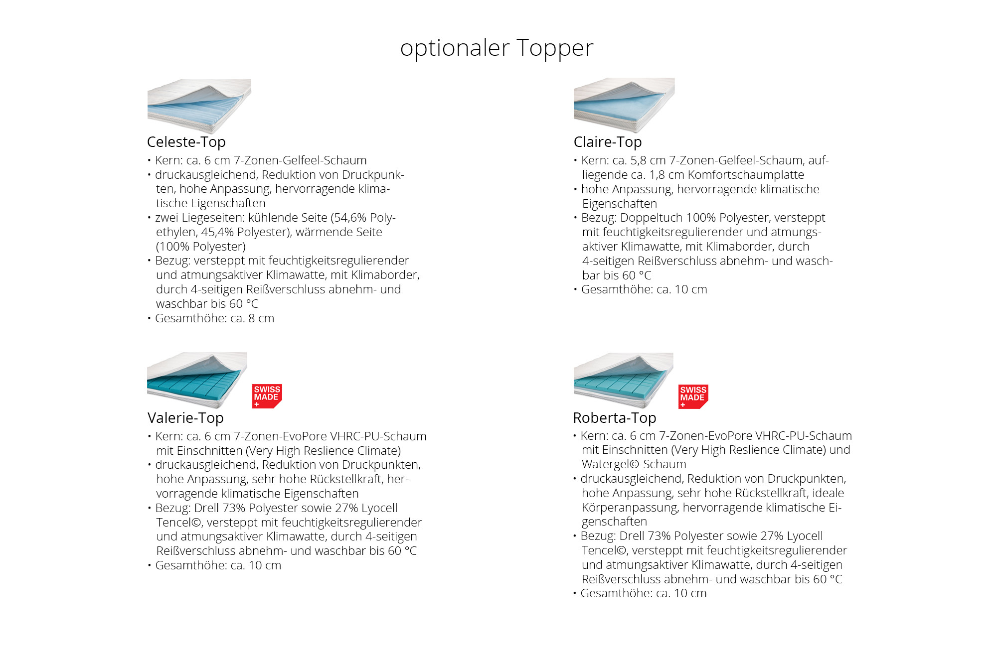 Hinweis! Bezüge sind bei allen Toppern abnehm- und waschbar bis 60 °C.