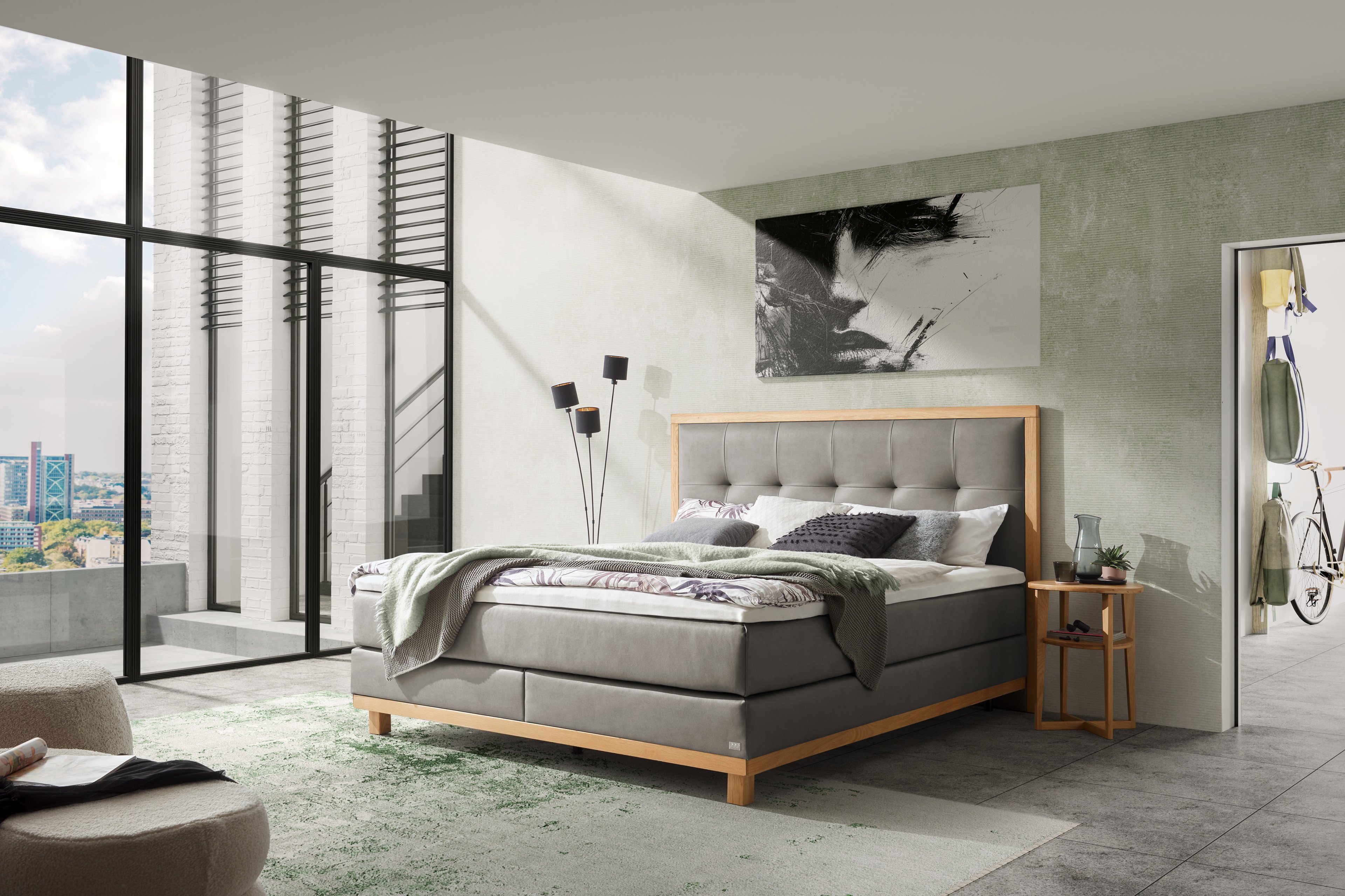 Der Nebel lichtet sich und die Sonne nimmt all ihre Kräfte zusammen, um durch die bodentiefen Fenster in Ihr Schlafzimmer zu drängen. Doch Sie bekommen von all dem nichts mit, da Sie sich noch in einer wunderschönen Traumwelt befinden. Gebettet auf Bonell- und Tonnen-Taschen-Federkernen mit einem aufliegenden Schaum-Topper, wird Ihnen in jeder einzelnen Nacht ein atemberaubend wohltuendes Liegegefühl geschenkt. Immer wieder werden Sie dazu verleitet, sich doch noch einmal umzudrehen und noch ein wenig zu entspannen, was bei dem zauberhaften Bett Pronto Cecilia von Hasena wirklich kein Wunder ist. Abgesehen von dem hohen Komfort, bezaubert Sie dieses Boxspringbett schon allein, wenn Sie es sich ansehen, denn neben dem eleganten Grau überzeugt es auch durch die dekorative Kopfteilumrandung und die Füße aus massiver Eiche. In jener geschmackvollen Holzausführung erhalten Sie auch den Beistelltisch dazu, den wir Ihnen, genau wie auch weitere Liegeflächen und Toppervarianten, unter unseren Zusatzoptionen zur Verfügung gestellt haben. Boxspringbetten von Hasena - hier können Sie Ihre Träume noch etwas länger genießen.