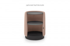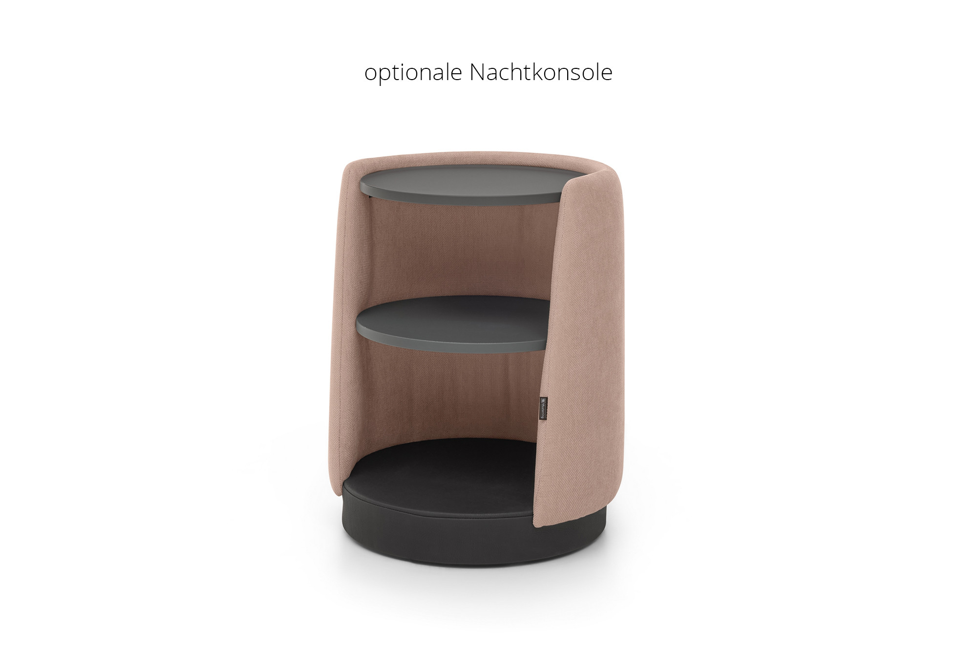 Nachtkonsole offen - in Möbelstoff bezogen, Sockel in Kunstleder schwarz, mit 3 Ablagen in Lack schiefergrau matt, Durchmesser ca. 48 cm, Höhe ca. 57,5 cm - optionale Bettbank: