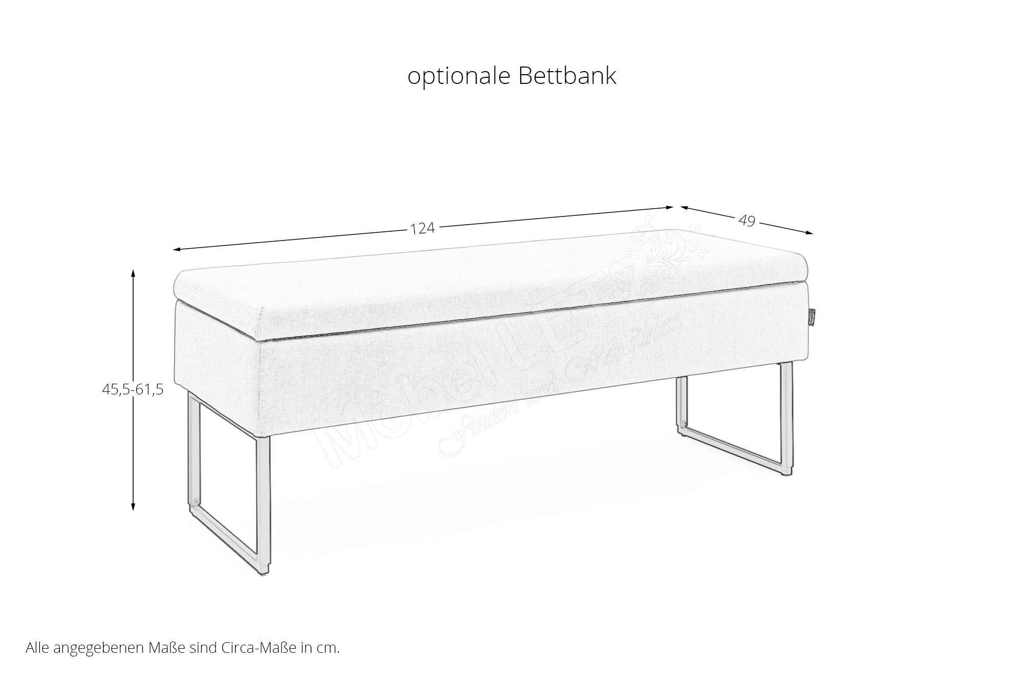 Stauraumbank - in Möbelstoff bezogen, mit 1 Fach und höhenverstellbarem Gestell in Anthrazit, ca. BHT: 124/45,5-61,5/49 cm - optionales Kissen: