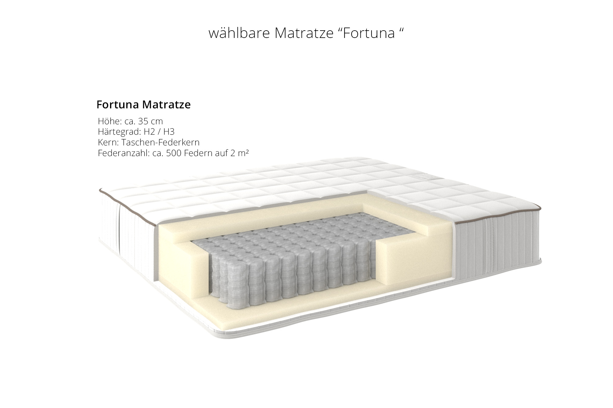Matratze Fortuna ist ab einer Bettbreite von ca. 160 cm sind wahlweise als Einzelmatratzen (2 Kerne in zwei Bezügen) oder als Partnermatratze (1 Kern in einem Bezug) erhältlich.