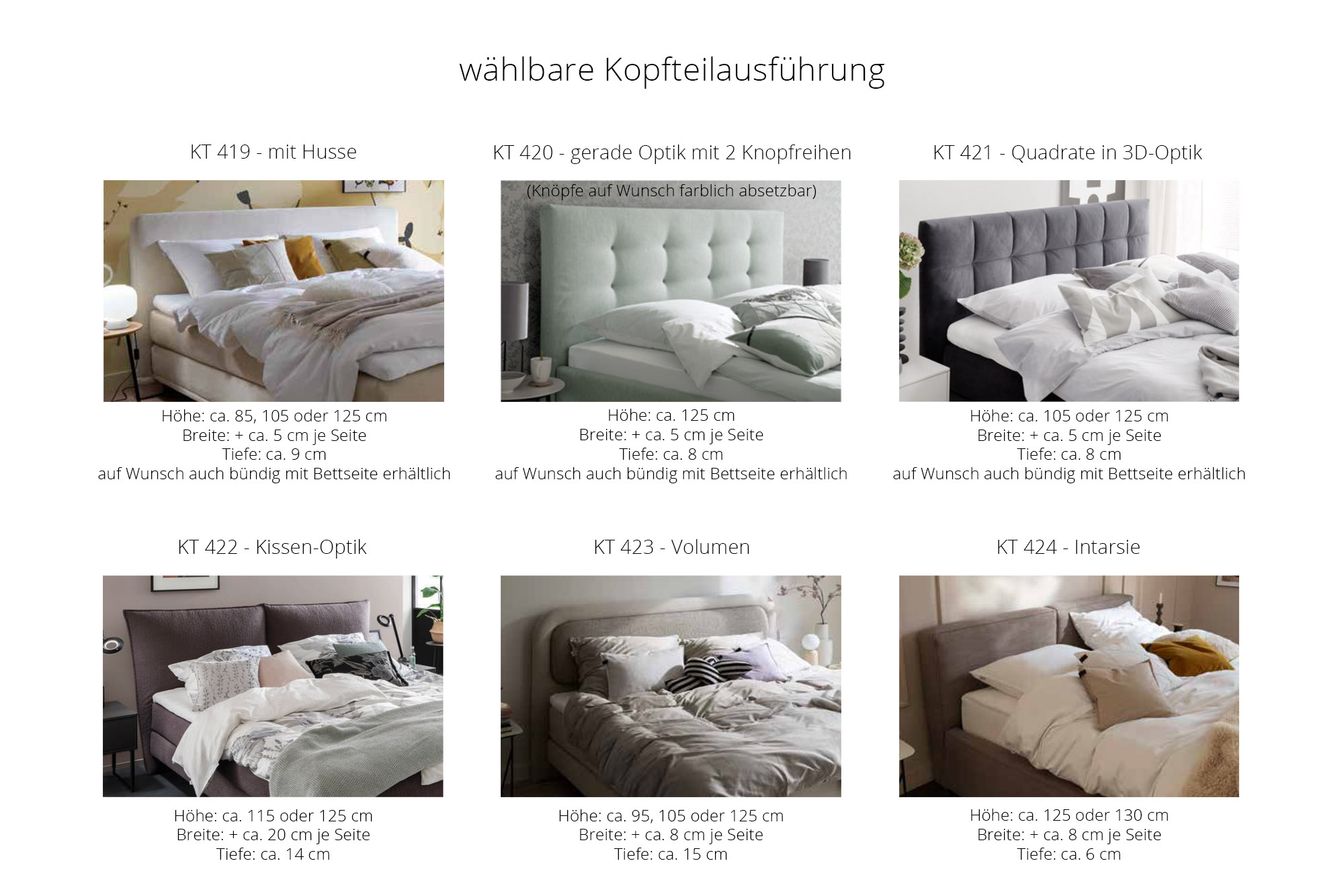 Hinweis! Alle Kopfteile können auf Wunsch im Rücken mit Möbelstoff bezogen werden.