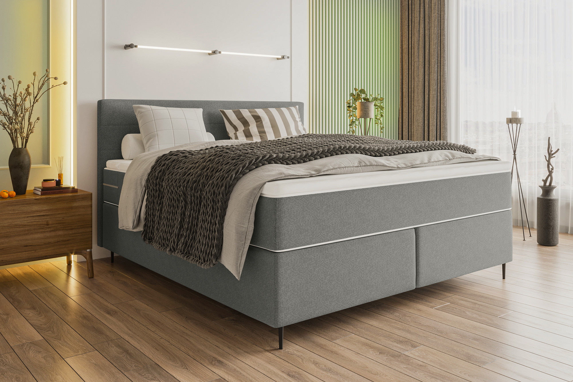 Boxspringbett grau von SW KOLLEKTION - Modell BX-LE-01 aus der Kollektion Basicline Dein Platz für die schönsten Stunden.