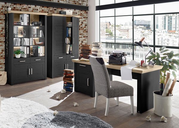Ein Büro ganz nach Ihren Wünschen einrichten - das wird mit den vielseitigen Büromöbel-Sets bei online Möbel kaufen zum Kinderspiel. Sie mögen den klassischen Office-Look? Dann richten Sie Büro oder Arbeitszimmer doch mit einem Büromöbel-Set in Anthrazit oder anderen Grautönen ein. Mit Absetzungen in Holzoptik bringen Sie dabei einen Hauch von Wohnlichkeit in die elegante Einrichtung. Freundlich, zeitlos und offen für wohl jedes Farbkonzept - so ist ein Büromöbel-Set in Weiß, wie es in unserem Büro Online-Shop erhältlich ist. Beruhigend schön und herrlich wohnlich sind die Büromöbel mit Echtholz oder in gelungenen Holznachbildungen. Die natürliche Wärme spüren Sie beim Betreten Ihres Büros, wenn Sie es mit einem Büromöbel-Set mit Massivholz einrichten. Echtes Holz, wie Eiche oder Buche, erfüllt höchste Ansprüche an ästhetische wie auch widerstandsfähige Möbel für das Büro. Daneben sind es spezielle Beschichtungen der Oberfläche, etwa mit Melaminharz, die für langlebige und strapazierfähige Möbel sorgen und die Sie zudem mit einem geringen Pflegeaufwand im Alltag überzeugen werden.
