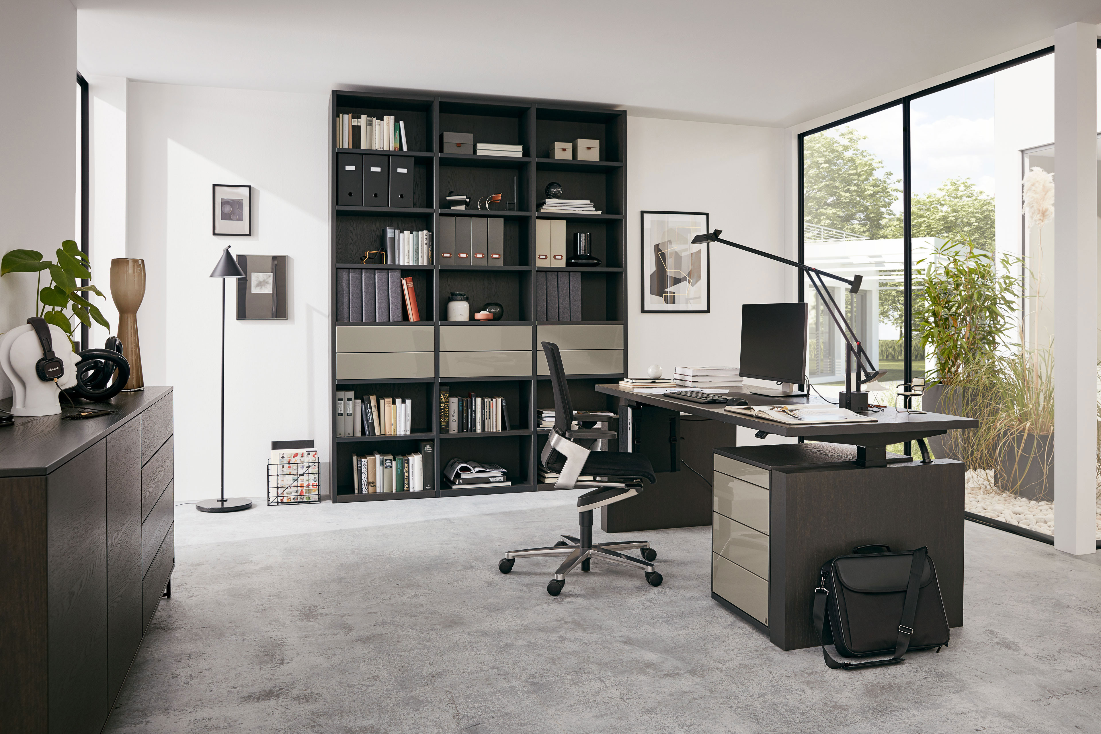höhenverstellbarer Bürotisch von Musterring - Modell Kara-Frame mit Fußverkleidung Kara-Frame - Möbel mit lebendiger Ausdruckskraft