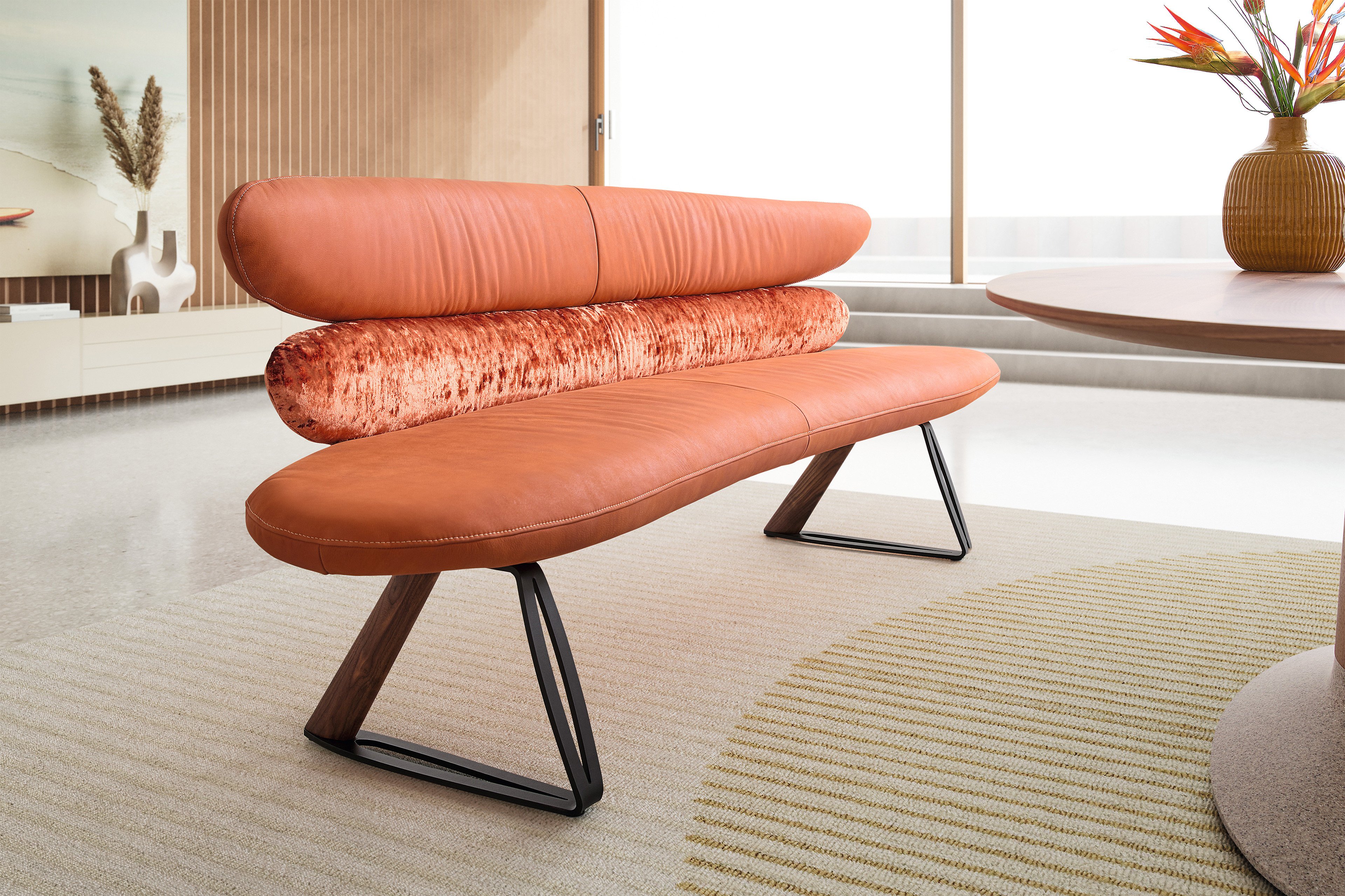 Die KOINOR Bank Surf berührt schon auf den ersten Blick - mit einer Ausstrahlung, die Ruhe schenkt und zugleich eine besondere Lebendigkeit in den Raum trägt. Ihre sanft modellierte Form wirkt wie eine fließende Bewegung, die sich harmonisch in das Wohnambiente einfügt und dabei eine Atmosphäre von Geborgenheit entstehen lässt. Sie lädt dazu ein, Platz zu nehmen, den Moment zu genießen und den Alltag für einen Augenblick hinter sich zu lassen. Die angenehm weiche Polsterung umschmeichelt den Körper und schafft ein Gefühl von Komfort, das man nicht nur spürt, sondern erlebt. Jeder Kontakt mit der Bank wird zu einem kleinen Innehalten – warm, vertraut und wohltuend. Dank einer Vielzahl erlesener Bezugsmaterialien lässt sich Surf ganz individuell gestalten und wird so zu einem persönlichen Ausdruck von Stil und Lebensgefühl. Unterschiedliche Fußvarianten verleihen ihr dabei jeweils einen eigenen Charakter – mal elegant zurückhaltend, mal markant und ausdrucksstark. Ob beim gemeinsamen Essen, in ruhigen Stunden allein oder im Zusammensein mit Gästen – Surf aus dem Hause KOINOR schafft einen Ort, an dem Erinnerungen entstehen und sich echtes Wohngefühl entfaltet.