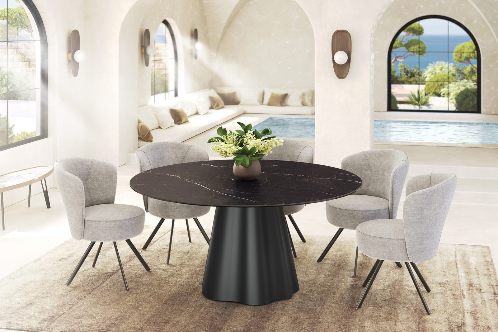 Esstisch von Akante - Modell Piana mit runder Tischplatte aus Keramik & Glas Akante Esstische - Keramik in ihrer wohl schönsten Form.