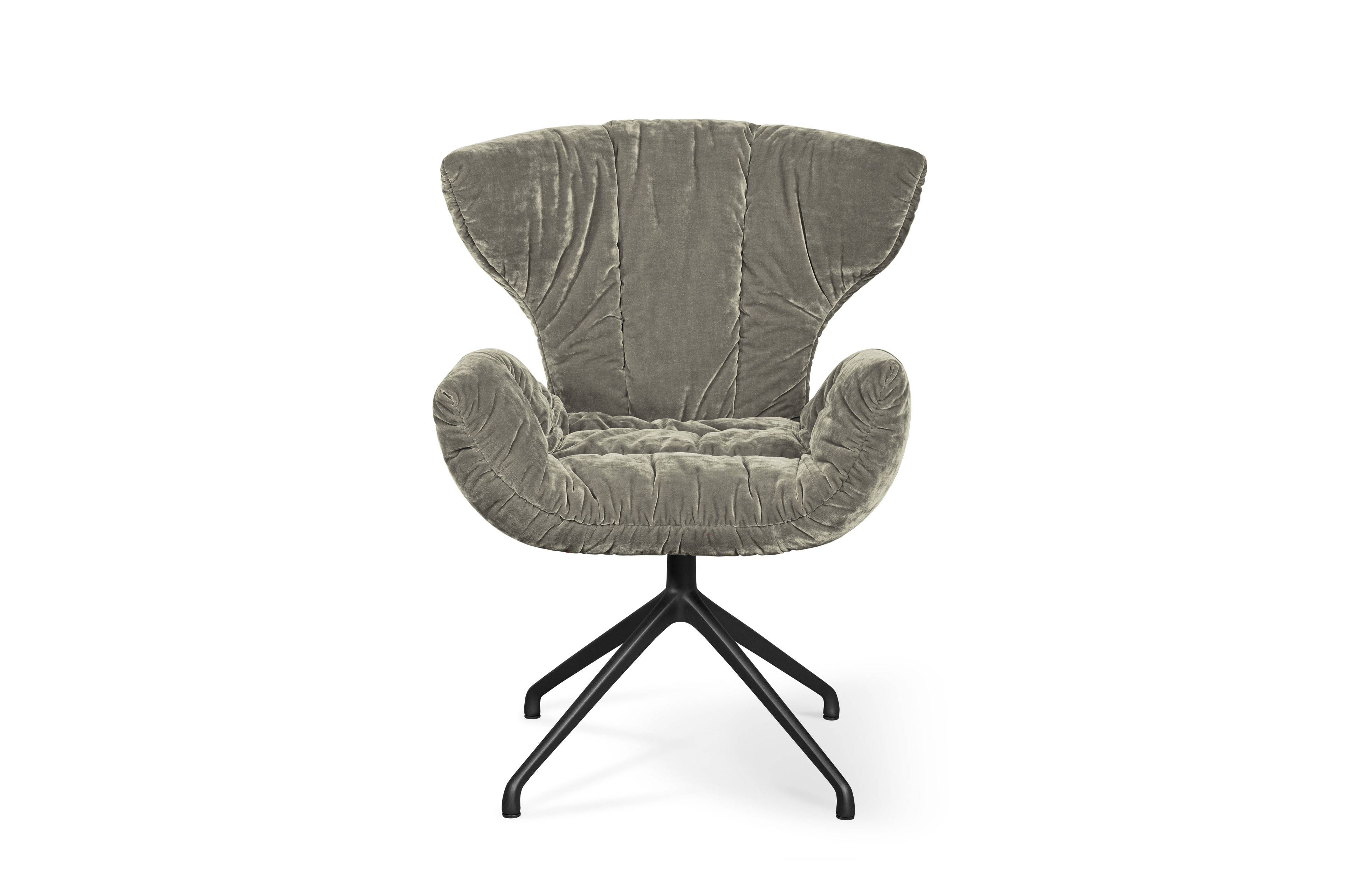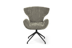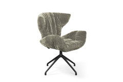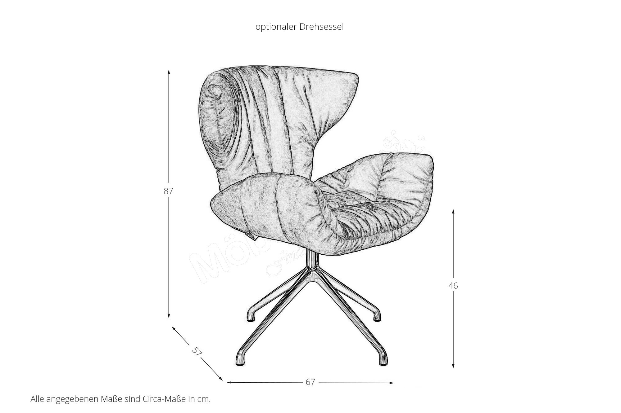 Sitz/ Rücken: Formholz-Gestell, fester Sitzkomfort mit starker Faltenbildung und florale, abstrahierte Blütenkelch-Form mit linearen Einzügen