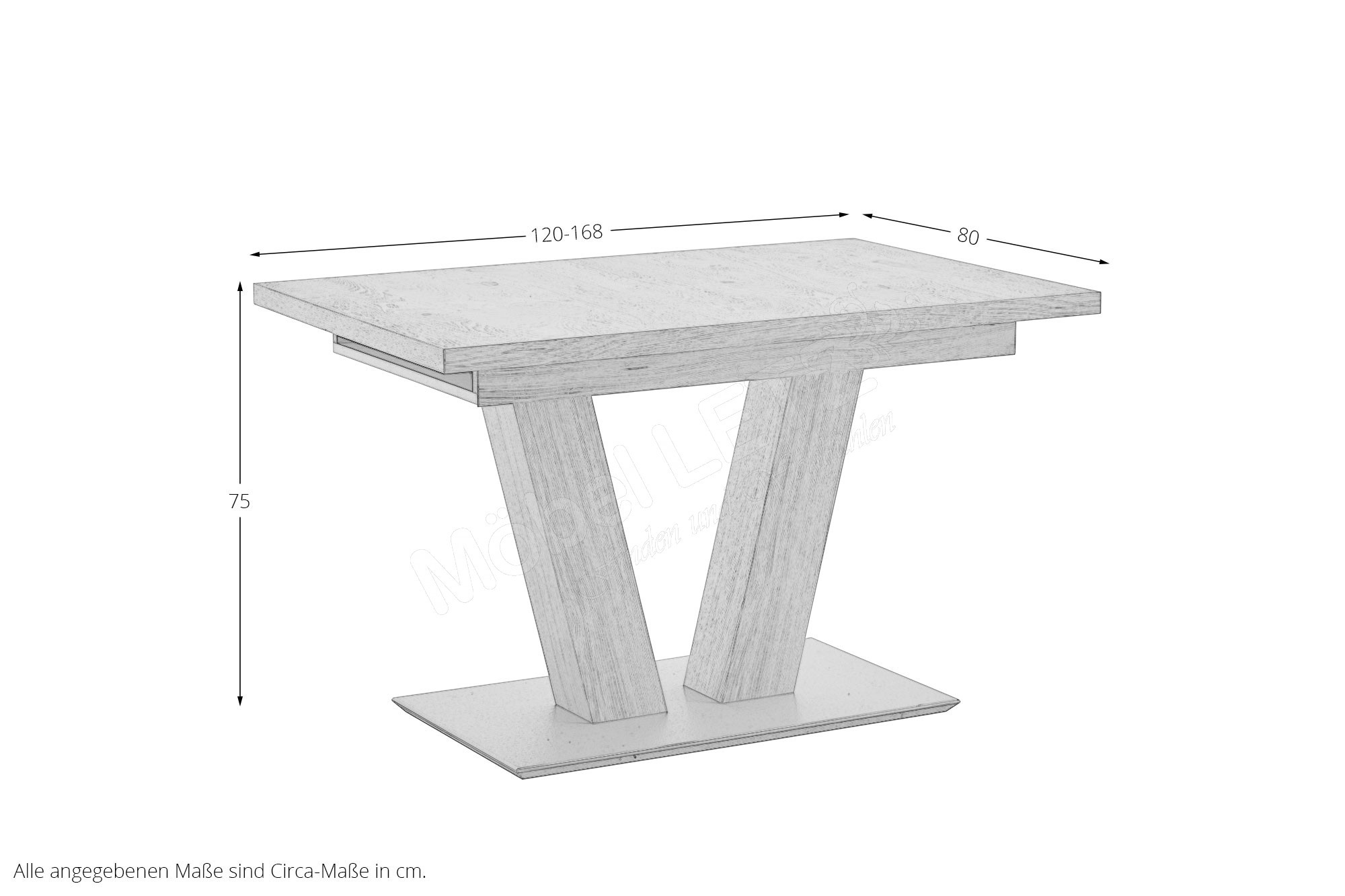 - 1 x 5302-2B-UG1 - Tisch, BHT ca.: 120-168/75/80 cm