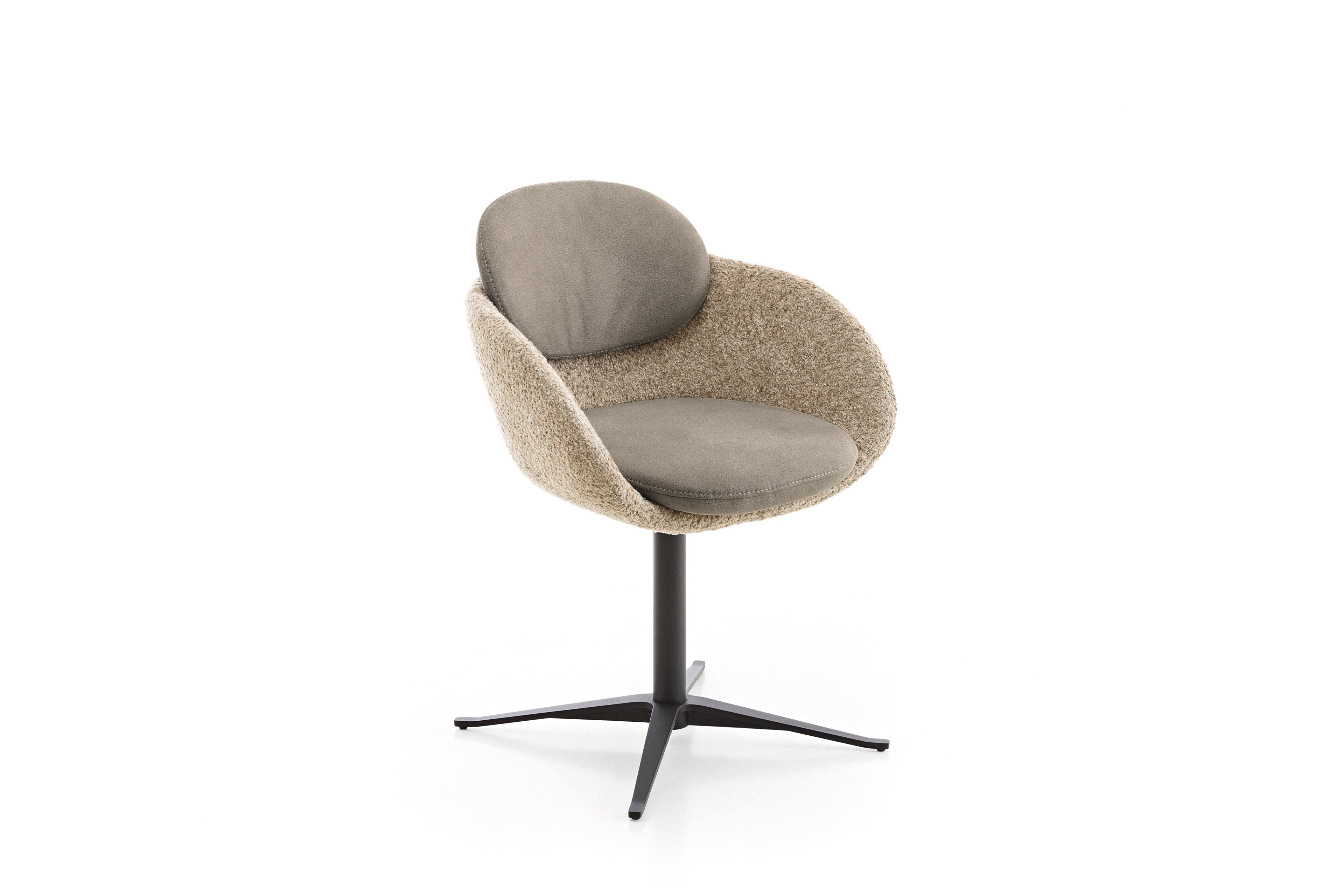 Der Stuhl 1310 von KOINOR vereint modernes Design mit außergewöhnlichem Sitzkomfort und wird so zum stilprägenden Highlight in jedem Wohn- oder Essbereich. Mit seiner harmonischen Formensprache und der raffinierten Materialkombination strahlt er eine zeitlose Eleganz aus, die sowohl anspruchsvolle Ästheten als auch Liebhaber hochwertiger Einrichtung begeistert. Im Grundangebot präsentiert sich der Stuhl mit einem filigranen Drehfuß in mattschwarzer Lackierung, der nicht nur für Stabilität sorgt, sondern auch eine angenehme Bewegungsfreiheit ermöglicht. Die 360-Grad-Drehfunktion unterstreicht den funktionalen Anspruch und macht den Stuhl besonders vielseitig im Alltag. Ein besonderes Highlight ist die edle Bezugskombination: Feinstes Echtleder in einem warmen Braunton trifft auf ein weiches Chenille-Flachgewebe und schafft so ein spannendes Spiel aus Struktur und Haptik. Während das Leder mit seiner natürlichen Eleganz überzeugt, sorgt das textile Gewebe für wohnliche Wärme und ein besonders angenehmes Sitzgefühl. Die ergonomisch geformte Sitzschale mit sanft integrierter Rückenlehne bietet optimalen Halt und lädt auch über längere Zeit hinweg zum entspannten Verweilen ein. Hochwertige Polsterungen garantieren dabei ein komfortables Sitzerlebnis auf höchstem Niveau. Ob als stilvoller Esszimmerstuhl oder als elegantes Einzelstück im Wohnbereich - der KOINOR Stuhl 1310 verbindet Design, Komfort und Qualität auf beeindruckende Weise und setzt ein klares Statement für gehobenes Wohnen.