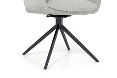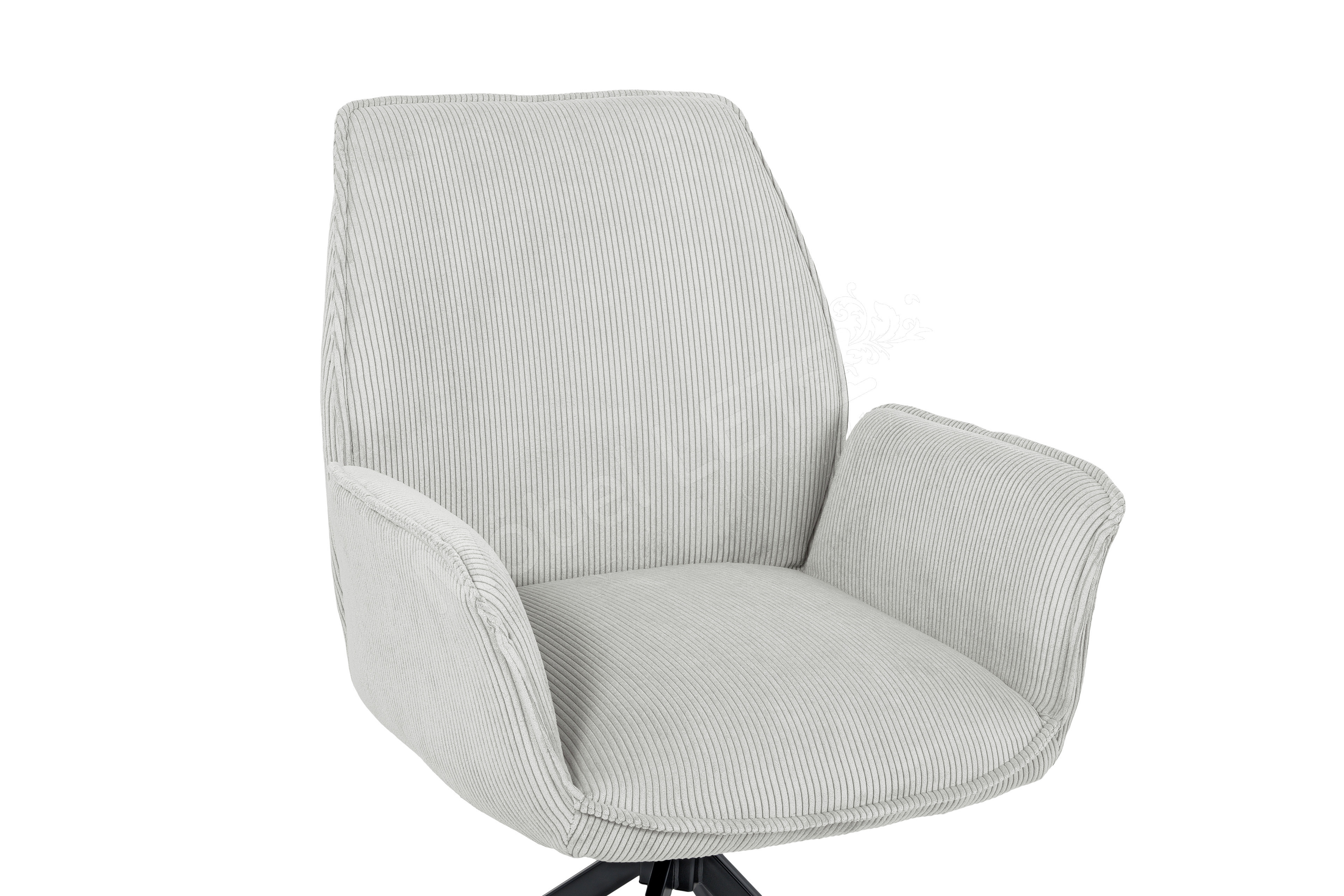Der Polsterstuhl Tiama, stammend aus dem Hause Musterring, vereint gekonnt Behaglichkeit, Stilsicherheit und Funktionalität. Beginnend bei dem exklusiven Polsteraufbau aus Wellenfedern, welcher einen besonders bequemen Sitzkomfort verspricht und von einem adretten, samtig weichen Cordbezug in Grau umhüllt ist. Weiterhin verfügt das Herzstück des Sitzmöbels über eine praktikable 180° Drehfunktion. Dank dieser Eigenschaft offeriert das Speisezimmermöbel eine stets bequeme Sitzposition sowie Bewegungsfreiheit bei Tisch. Überdies sorgt ein aus Eisen gearbeitetes Stativgestell für einen festen Stand, dessen schwarze Farbgebung dem Musterring Stuhl einen zeitlosen Charme verleiht. Mit dem Stuhl Tiama von Musterring treffen Sie genau die richtige Wahl, wenn Sie bei der Einrichtung Ihres Esszimmers Wert auf Komfort und Modernität legen.