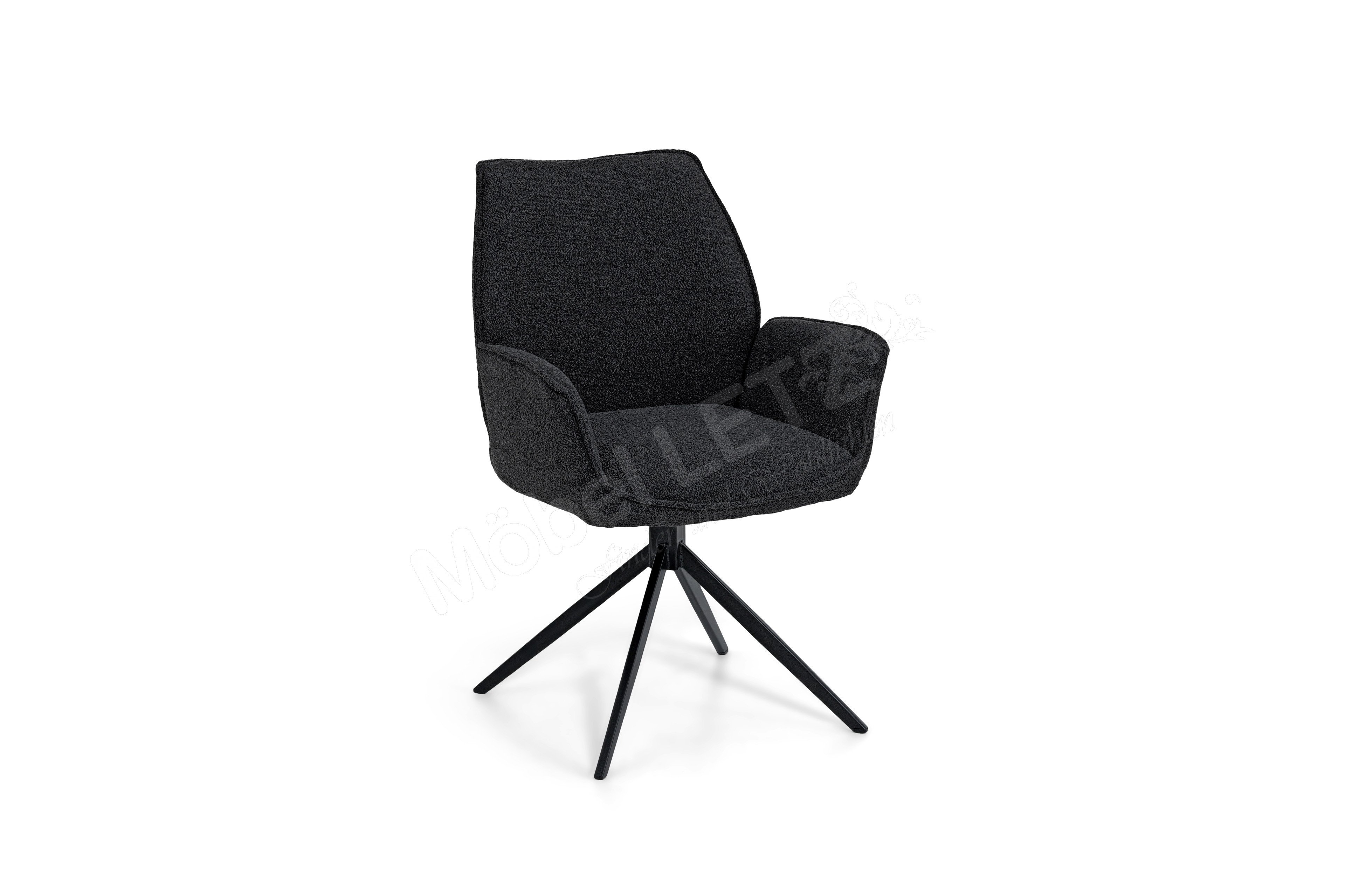 Der Polsterstuhl Tiama, stammend aus dem Hause Musterring, vereint gekonnt Behaglichkeit, Stilsicherheit und Funktionalität. Beginnend bei dem exklusiven Polsteraufbau aus Wellenfedern, welcher einen besonders bequemen Sitzkomfort verspricht und von einem adretten, samtig weichen Boulcé-Bezug in Anthrazit umhüllt ist. Weiterhin verfügt das Herzstück des Sitzmöbels über eine praktikable 180° Drehfunktion. Dank dieser Eigenschaft offeriert das Speisezimmermöbel eine stets bequeme Sitzposition sowie Bewegungsfreiheit bei Tisch. Überdies sorgt ein aus Eisen gearbeitetes Stativgestell für einen festen Stand, dessen schwarze Farbgebung dem Musterring Stuhl einen zeitlosen Charme verleiht. Mit dem Stuhl Tiama von Musterring treffen Sie genau die richtige Wahl, wenn Sie bei der Einrichtung Ihres Esszimmers Wert auf Komfort und Modernität legen.