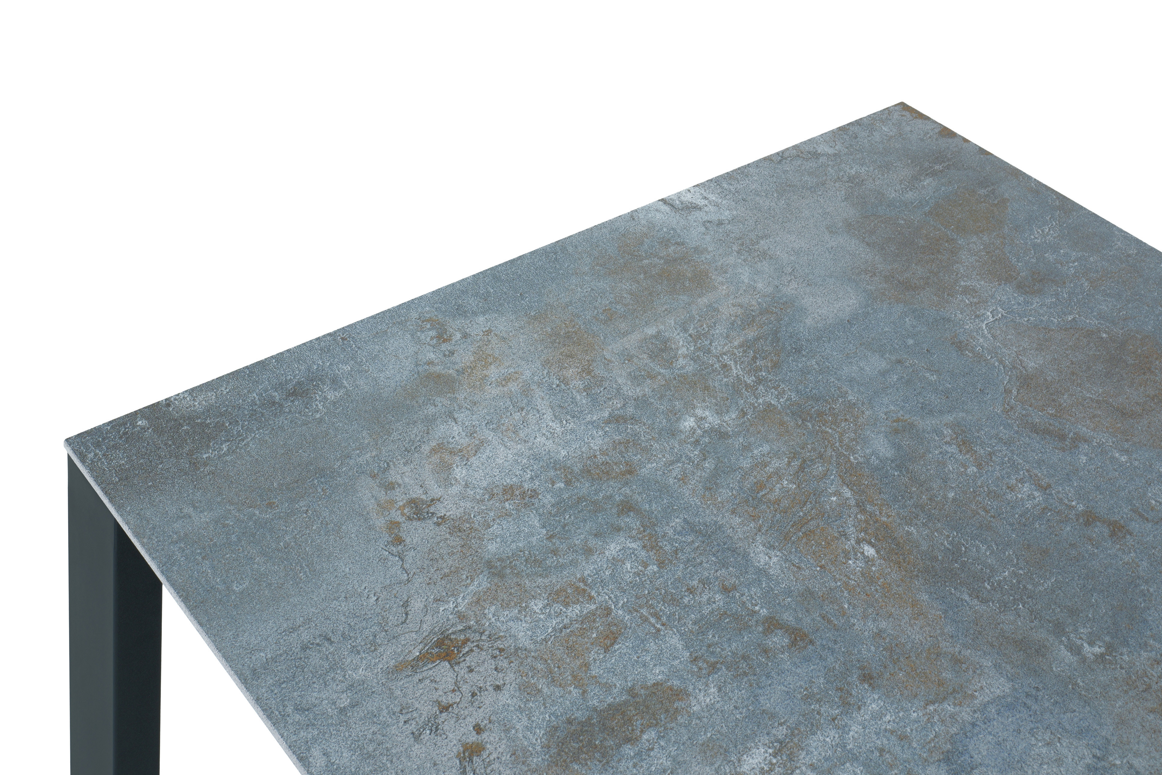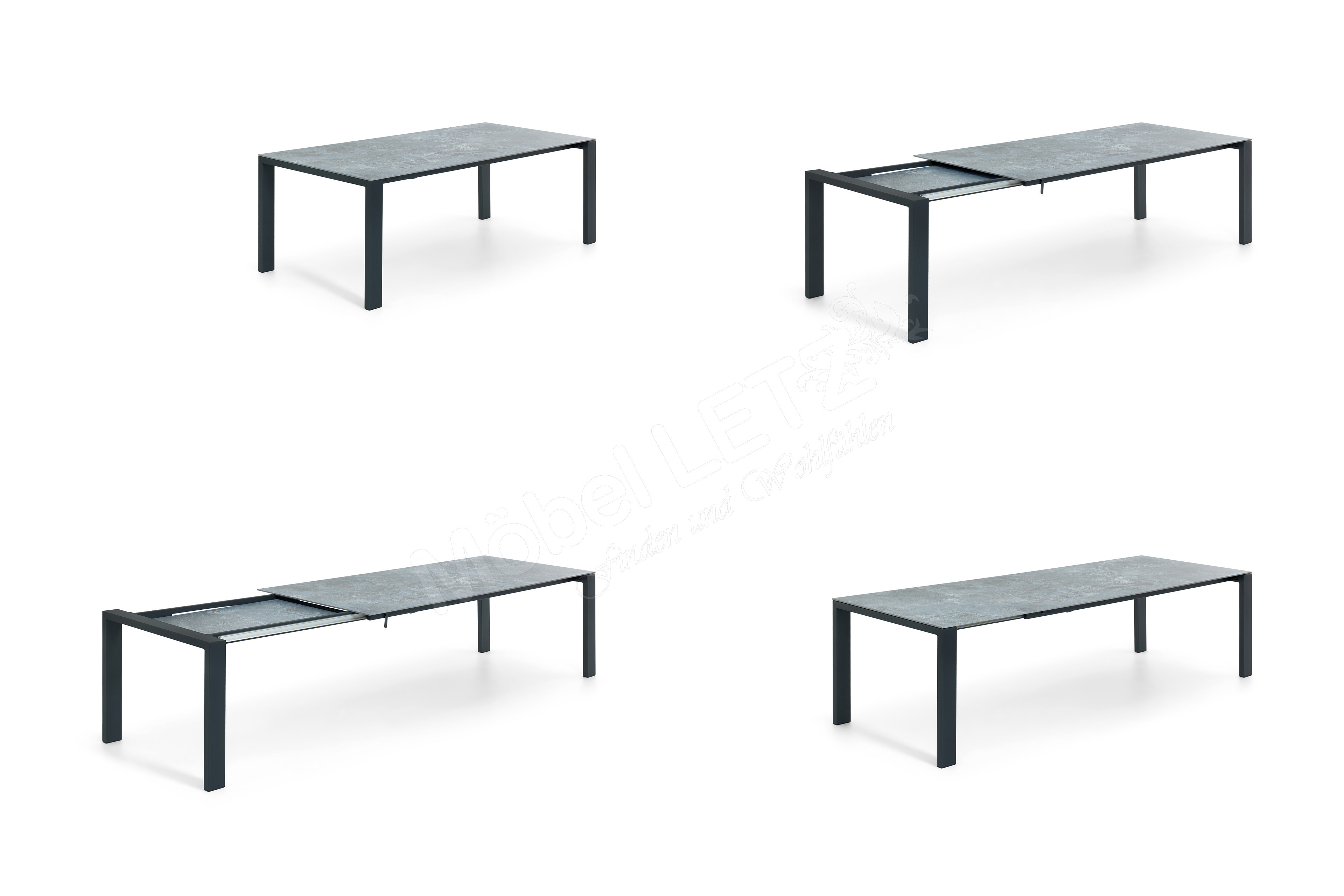 Der Gartentisch Etna-Delta-Garden von Sit Mobilia bringt frischen Wind in jeden Außenbereich und vereint auf elegante Weise modernes Design mit hochwertiger Verarbeitung. Die Tischplatte aus Dekton in der Ausführung Orix beeindruckt durch ihre natürliche Steinoptik und ihre außergewöhnliche Widerstandsfähigkeit. UV-beständig, kratzfest und wetterresistent eignet sich diese Oberfläche ideal für den ganzjährigen Einsatz im Freien und bleibt auch an heißen Sommertagen angenehm kühl. Getragen wird die Platte von einem klar geformten Gestell aus pulverbeschichtetem Stahl in stilvollem Anthrazit, das dem Tisch nicht nur eine zeitlose Ästhetik verleiht, sondern auch höchste Stabilität garantiert. Ein besonderes Highlight ist die praktische Ausziehfunktion, die es ermöglicht, den Tisch im Handumdrehen zu verlängern. So wird aus einem gemütlichen Familientisch schnell eine großzügige Tafel für gesellige Sommerabende mit Freunden. Der Etna-Delta-Garden ist mehr als nur ein Gartentisch – er ist ein Statement für stilvolles Outdoor-Living. Ob auf der Terrasse, im Garten oder auf dem Balkon, dieser Tisch überzeugt durch Qualität, Langlebigkeit und ein Design, das sich harmonisch in jede Umgebung einfügt. Mit seiner robusten Bauweise und der eleganten Optik bietet er den perfekten Rahmen für entspannte Stunden unter freiem Himmel. Wer Wert auf modernes Outdoor-Mobiliar legt, trifft mit dem Tisch von Sit Mobilia Etna-Delta-Garden die ideale Wahl.