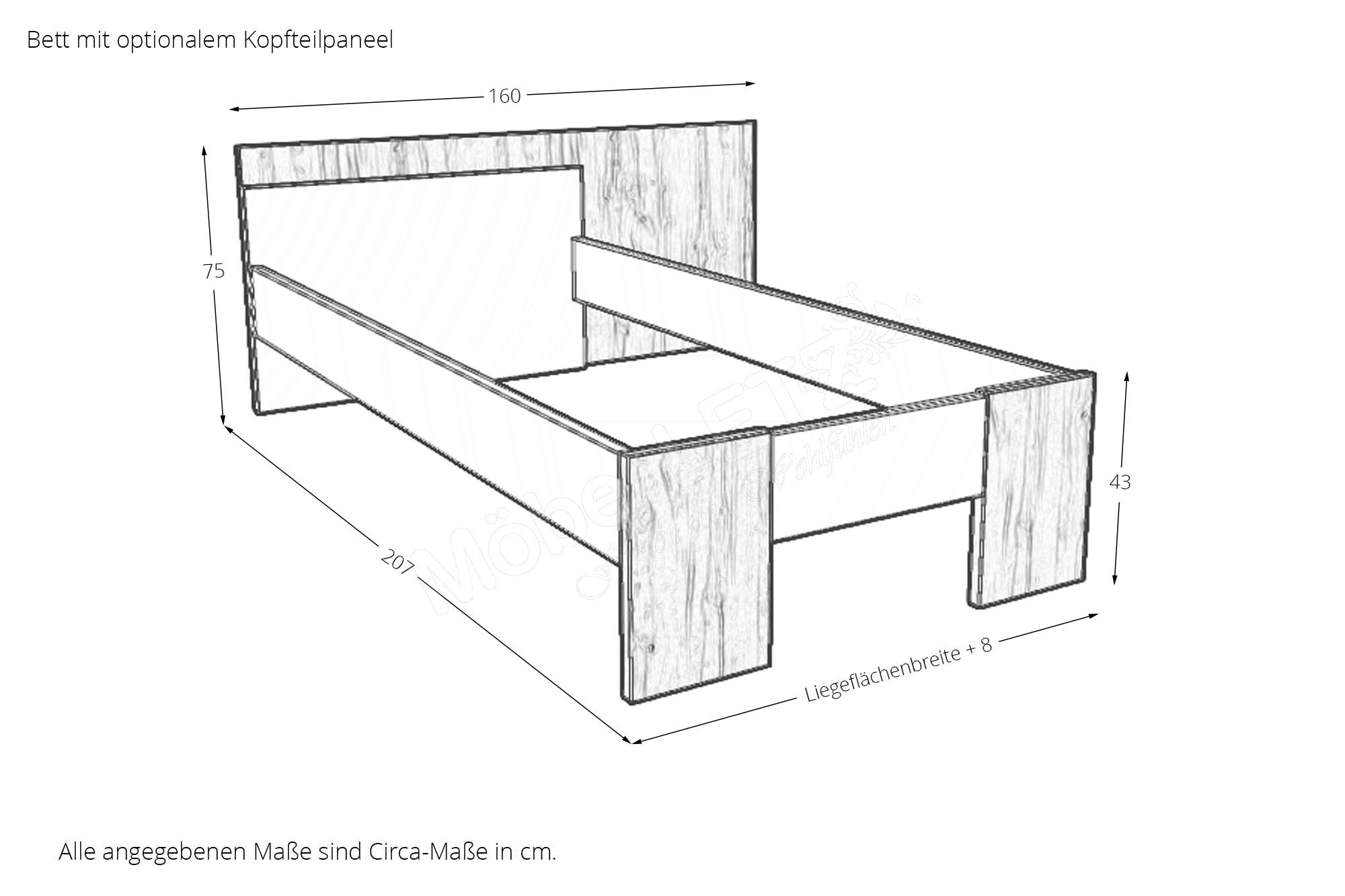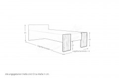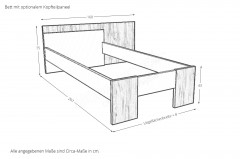 - Bett: Liegenbett mit Farb-Apllikation am Fußteil, Bettseitenhöhe ca. 42,6 cm, Fußhöhe/ Freiraum unter dem Bett ca. 23 cm