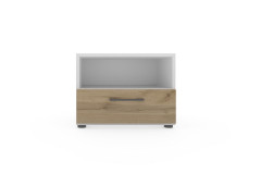 Neben zahlreichen Stauraummöbeln bietet das Einrichtungsprogramm cadre.plus aus der aus der YOUNG LIVING-Kollektion von Röhr-Bush auch unterschiedliche Schlafgelegenheiten wie das hier vorgestellte Liegenbett an. Der Bettrahmen und auch das Kopfteil sind in Weiß gehalten, während sich die beiden vorderen Bettfüße mit Absetzungen in Votan-Eiche-Nachbildung schmücken. Über die Zusatzoptionen haben Sie die Möglichkeit, das Liegenbett mit einem Kopfteilpaneel, das links und rechts verwendbar und alle Liegeflächenbreiten geeignet ist, zu bestellen. Dieses greift von der Optik noch einmal die zur Fußausführung passende Holznachbildung auf und schenkt dem Bett so noch mehr Natürlichkeit. Auch die Nachtkonsole mit einem offenen Fach und einem Schubkasten ist direkt über diese Zusatzattribute kaufbar. Ihnen fehlt noch das passende Bettzubehör? In unserem Shop finden Sie auch Lattenroste und Matratzen für die von Ihnen gewählte Liegeflächengröße. Nutzen Sie unseren Online-Möbelplaner, um weitere Elemente aus der Serie cadre.plus von Röhr-Bush zu bestellen.