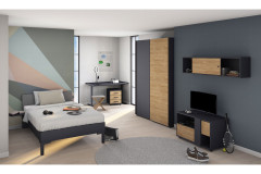 Wohnen mit Style ... dieser Slogan hält bei dem Programm qunit von Röhr-Bush aus der Kollektion YOUNG LIVING, was er verspricht. Geradlinige Modernität bezüglich der Formen und Farben und gemütliche Harmonie im Hinblick auf die holzähnliche Hickory-Absetzung sowie das kuschelweiche Kopfteil mit Cord-Bezug bieten Ihnen einen angenehmen Wohnkomfort mit Wohlfühlfaktor. Im Jugendzimmer-Basis-Set ist der etwa 160 cm breite Schwebetürenschrank und das Liegenbett mit einer Schlaffläche von 90 x 200 cm enthalten. Änderungen bezüglich der Farbgestaltung, Ausstattung und Bettgröße sind über unsere Zusatzoptionen möglich, sodass Sie das 2-teilige Grundangebot mit Schrank-Zubehör ausrüsten und bezüglich der Liegeflächen-Größe sowie der Oberflächen anpassen können. Natürlich finden Sie dort auch alle abgebildeten Beimöbel: Angefangen bei der Bett-Konsole, über den Schreibtisch und den Rollcontainer bis hin zum Hänge- und Medien-Element sind alle Typen ganz einfach zum Warenkorb hinzufügbar. Sie bevorzugen einen Drehtürenschrank oder eine Schrank-Kombination und möchten ein Bettsofa sowie eine Kommode in den Wohnraum integrieren? Für Ihre individuelle Zusammenstellung bieten wir Ihnen den Komfort unseres Online-Konfigurators, der alle modelleigenen Möbelstücke enthält, sodass Sie sich nach Wunsch und Bedarf ganz einfach eine perfekte Kombination planen und direkt online bestellen können. Die qunit-Möbel von Röhr-Bush ... ästhetisch wohnen.