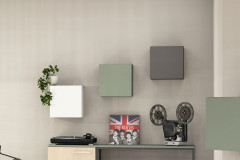 Wenn kreative, praktische und hübsche Wandgestaltungs-Ideen gefragt sind - dann haben wir hier eine hübsche Inspiration für Ihr Zuhause. Auf dem Artikelbild sehen Sie ein 3-teiliges Set aus der Modellreihe cocoon von Röhr-Bush, das aus unterschiedlich farbigen Tür-Elementen besteht. Jeder kleine Hängeschrank hat eine quadratische Front mit einem Maß von etwa 34 x 34 cm und eine Tiefe von etwa 27 cm. Die Hängeelemente haben jeweils eine maximale Belastung von 25 kg und eine Tür, die rechts oder links montierbar ist. Alle Schränkchen, das weiße, das salbei-farbene und auch das graphit-farbene, besitzen eine pflegeleichte Melaminharzoberfläche, die kratzfest, stoßfest, feuchtigkeitsabweisend und lichtbeständig ist. Mit dem Kauf dieser Kombination sind Sie besonders flexibel und anpassungsfähig: Ordnen Sie die Elemente einfach wie abgebildet, in einer selbst gewählten Formation oder einzeln auf verschiedenen Wänden an. Sie hätten dieses Set gern in einer anderen Ausführung? Kein Problem. Nutzen Sie unsere Zusatzoptionen, um die angebotene verschieden farbige Version mit einem einheitlichen anderen Dekor auszuwählen. Für den einfachen Online-Kauf von weiteren Tür-Elementen, offenen Regalen oder auch größeren Hängeschränken und vielen weiteren zugehörigen Möbeln des Modells cocoon von Röhr-Bush steht Ihnen unser Konfigurator zur Verfügung.