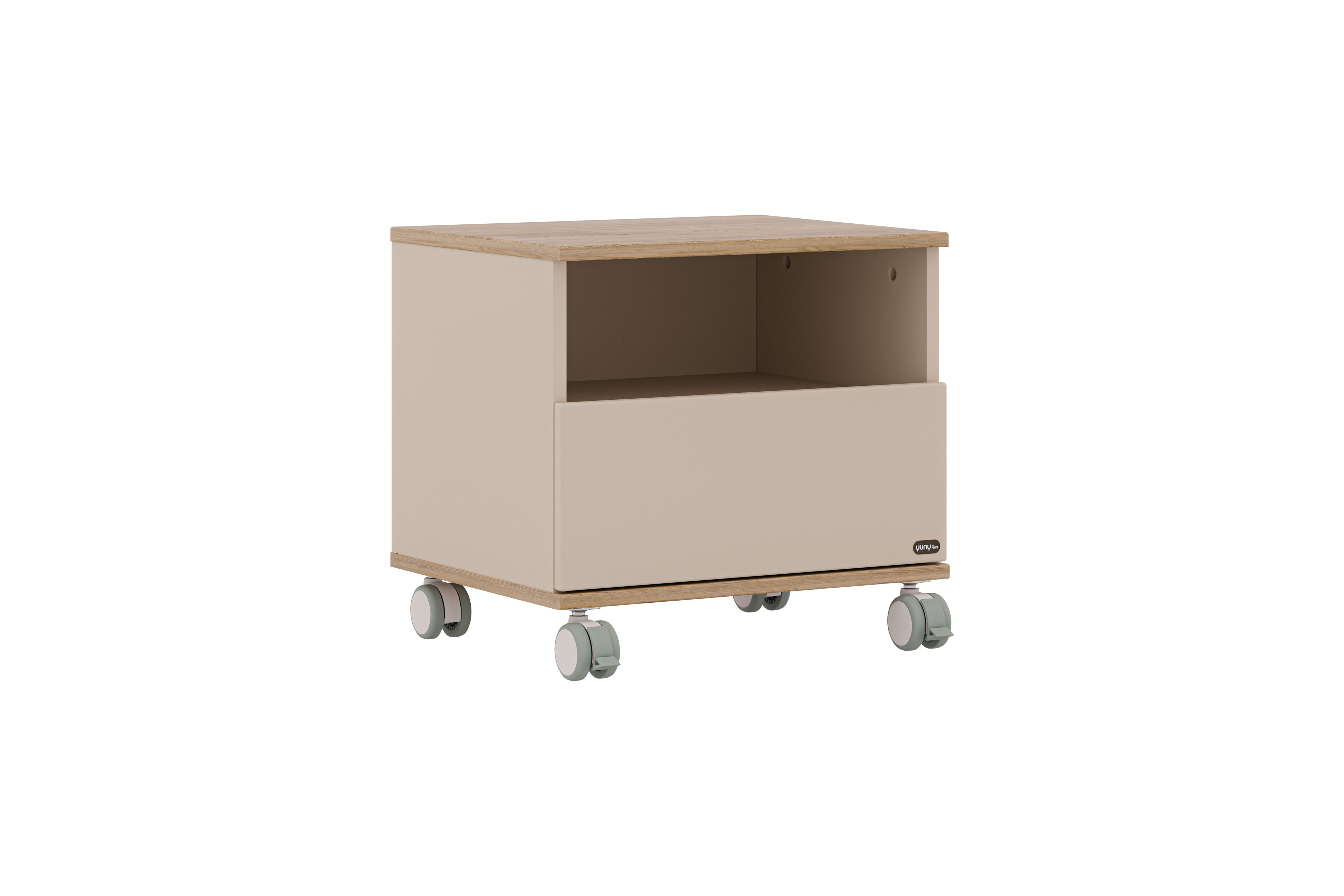 Der Rollcontainer Hazel aus der Kollektion YUNY by Paidi ist ein besonders flexibles und gleichzeitig hübsches Möbelstück für Kinder- und Jugendzimmer. In warm wirkendem Cashmere-Beige gehalten sowie mit einem Ober- und Unterboden in Eiche-Montana-Nachbildung versehen, wirkt er freundlich und wohnlich und lässt sich wunderbar in unterschiedliche Raumkonzepte einfügen. Mit einem offenen Fach und einer Schublade bietet Hazel genug Platz für Bücher, Spielsachen oder alles, was schnell griffbereit sein soll, und hilft so, das Zimmer ordentlich zu halten. Dank der vier Rollen – von denen zwei feststellbar sind – lässt sich die kleine Kommode einfach verschieben und bei Bedarf sicher an ihrem Platz fixieren. Auch als Nachttisch neben dem Bett macht der Rollcontainer eine ebenso praktische wie ansprechende Figur. Bei dem Programm Hazel von YUNY by PAIDI handelt es sich um eine komplette Einrichtungslinie, sodass Sie den Rollcontainer mit weiteren passenden Elementen zu einem kompletten Kinder- oder Jugendzimmer ergänzen und so eine harmonische, stilvolle Einrichtung schaffen können, die mit den Bedürfnissen mitwächst.