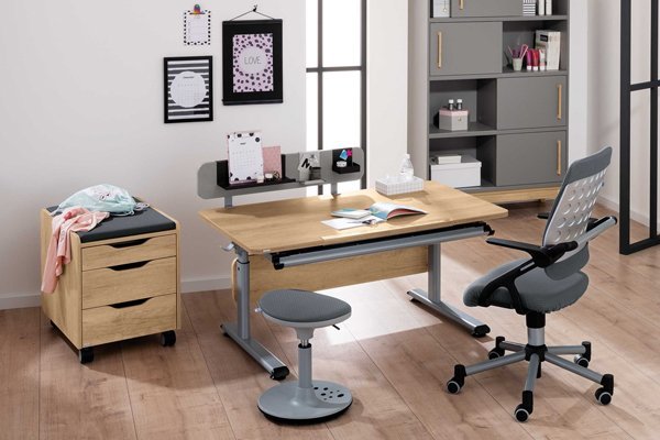 Das Jugendzimmer ist für einen Teenager nicht nur Wohnbereich und Schlafzimmer, sondern zu einem wesentlichen Teil auch sein Arbeitsplatz, an dem es gilt, schulische Erfolge vorzubereiten, für Testate zu lernen, für Referate zu recherchieren und Hausaufgaben zu machen. Hierfür benötigen Heranwachsende in ihrem Jugendzimmer einen komfortablen Schreibtisch samt Drehstuhl, um alle schulischen Herausforderungen meistern zu können. Viele Jugendzimmerschreibtische sind höhenverstellbar und wachsen so mit dem Teenager mit. Schließlich sind auch Jugendliche noch nicht vollständig ausgewachsen und gerade während der Pubertät, oft auch bis ins 19. Lebensjahr hinein, ist noch mit teils deutlichen Wachstumsschüben zu rechnen. Mit einem höhenverstellbaren Schreibtisch meistert Ihr Kind die komplette Teenagerzeit mühelos und kann das Arbeitsmöbel in vielen Fällen sogar noch, nach dem Auszug von zuhause, in der ersten eigenen Wohnung weiter nutzen. Häufig beinhalten Jugend-Schreibtische auch interessante Extras, wie Schubfächer, Regalteile oder zugehörige Rollcontainer, welche Stauraum in direkter Nähe des Arbeitsplatzes bereitstellen. Samt einem rückenfreundlichen, ergonomisch korrekten Schreibtischstuhl richten Sie so für Ihren Sohn oder Ihre Tochter den perfekten Arbeitsplatz zum Erledigen von Hausaufgaben und Schulprojekten ein. Ob klassisch mit Stift, Papier und Hefter oder Recherche für ein Referat am Computer – ein komfortabler Schreibtisch im Jugendzimmer kann den oft stressigen Schulalltag immens erleichtern!