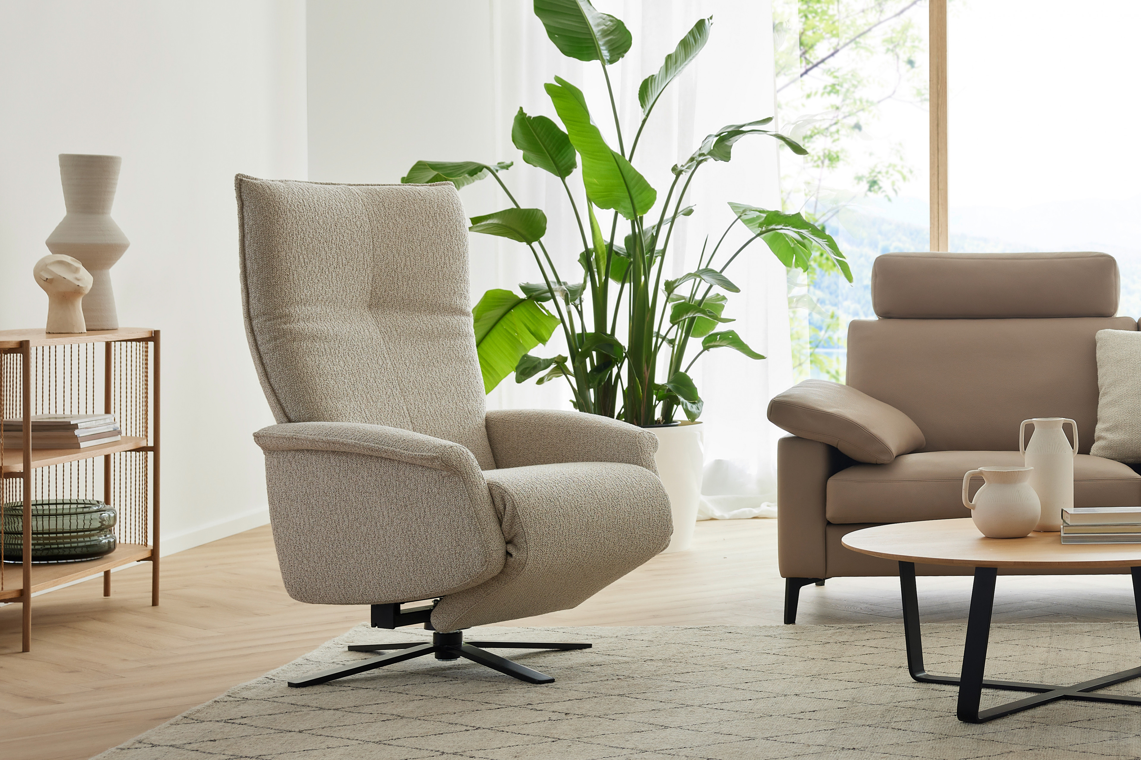 Der Erpo Funktionssessel CL 334 aus der Classics-Serie vereint elegantes Design mit luxuriösem Sitzkomfort - die perfekte Ergänzung zu hochwertigen Ledergarnituren. Mit seiner exzellenten Verarbeitung, der ansprechenden Formsprache sowie den vielseitigen Funktionsoptionen wird der Relaxsessel zum Mittelpunkt Ihrer Wohlfühlzone. Der Sessel bietet Ihnen eine stufenlose Verstellung von Sitz und Rücken bis in die Liegeposition, sodass Sie Ihre individuelle Lieblingshaltung finden. Die Rückenlehne lässt sich separat einstellen, und die Nackenstütze ist neigungsverstellbar - für ergonomisch optimalen Halt beim Sitzen, Lesen oder Entspannen. Je nach Ausführung kann der Sessel manuell oder elektronisch betrieben werden. Die Aufpreispflichtige Comfort-Funktion ermöglicht eine bequeme elektronische Verstellung per Knopfdruck, während die optionale Easy-UP-Funktion das Aufstehen erleichtert, ideal für noch mehr Komfort im Alltag. Auf Wunsch ist der Sessel bei diesen beiden Funktionen auch mit Akkubetrieb erhältlich und kann dadurch flexibel sowie kabellos im Raum positioniert werden. Gefertigt in der traditionellen deutschen Manufaktur von Erpo, besticht der Einzelsessel durch hochwertige Materialien, sorgfältige Verarbeitung und zeitlose Eleganz. Er harmoniert perfekt mit klassischen wie modernen Interieurs und setzt elegante Akzente in Ihrem Wohnbereich. Erleben Sie entspannten Sitzkomfort auf höchstem Niveau und gönnen Sie sich mit dem Erpo Sessel CL 334 Ihren ganz persönlichen Lieblingsplatz.