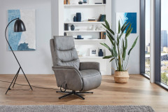 Optimale Entspannung garantiert Ihnen der formschöne Relaxsessel 7091 aus dem Hause Himolla Polstermöbel. Auf dem Modell aus der EASYSWING-Kollektion relaxen Sie in aufrechter Sitzhaltung oder in einer bequemen Liegeposition. Abschalten nach einem anstrengenden Arbeitstag, die Lieblingssendung schauen, ein spannendes Buch lesen oder ein erholsames Mittagsschläfchen halten - hier ist alles möglich. In einem hochwertigen, grauen Echtleder bezogen sowie auf einem anthrazitfarbenen Metallsternfuß stehend, lässt er sich mühelos in Ihr bestehendes Wohnambiente einfügen und macht als Solitärmöbel ebenso eine gute Figur wie als Ergänzung zu einer Himolla Polstergarnitur. Wählen Sie aus drei Superlastic-Formschaum-Polsterungen die für Sie angenehmste und genießen Sie einen Sitzkomfort, der den höchsten Ansprüchen gerecht wird. Zudem verfügt der TV-Sessel über eine 2-motorige Relaxfunktion, bei der sich Rücken und Fußteil getrennt voneinander per Handschalter in die gewünschte Relaxhaltung bringen lassen, was gemütliche Augenblicke garantiert, sowie über eine High-Tech-Massagefunktion. Diese bietet Ihnen fünf manuelle Massageprogramme, von Streichen, über Klopfen und Kneten bis hin zur Dehnung der Lendenwirbelsäule, sieben automatische Programme sowie fünf wählbare Intensitätsstufen. Mit diesem formschönen Funktionssessel bringen Sie den Wohlfühlkomfort auf ein neues Level. Lassen Sie es sich gut gehen mit 7091 von Himolla.