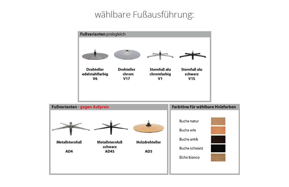 - Fußvariante: V6 - Drehteller edelstahlfarbig