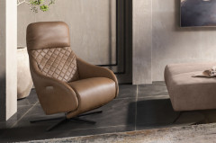 32700 Dante aus dem Hause Willi Schillig - relaxen Sie mit Stil und Klasse auf höchstem Niveau. Der charmante Relaxsessel präsentiert sich in einem braunen Semianilinleder mit einem schwarzen 5-Sternfuß und vereint elegantes, modernes Design mit erstklassigem Sitzkomfort. Dabei sorgt die hochwertige Polsterung im Sitz und im Rücken für ein angenehmes Sitz- sowie Liegegefühl. Gönnen Sie sich eine Auszeit in aufrechter Sitzhaltung oder in gemütlicher Liegeposition und lassen Sie den Stress, die Hektik sowie alle Sorgen des Tages hinter sich. Bereits beim ersten Platznehmen werden Sie merken, wie sich die Anspannungen lösen, sich die Polsterung sowie der Bezug sanft Ihrem Körper anschmiegen und wie kinderleicht sich der Sessel in die von Ihnen gewünschte Relaxposition einstellen lässt. Denn serienmäßig verfügt er bereits über eine motorische Sitz- und Rückenverstellung sowie über ein manuell, stufenlos verstellbares Kopfteil. Ob im Wohn- oder Arbeitszimmer, Warte- oder Empfangsbereich, als Solist oder als schicke Ergänzung zu einer Polstergarnitur - mit dem Tablet, Handy, einer interessanten Lektüre in der Hand oder einfach nur zum Seele baumeln lassen sowie in Gedanken schwelgen, der TV-Sessel ist in jedem Fall ein Blickfang und bietet zu jeder Zeit einen bequemen Sitzplatz. Verschiedene Fußausführungen, eine Ausführung mit oder ohne Rautenheftung in der Rückenlehne sowie viele wunderschöne Bezüge unter dem Punkt "Wunschbezug - Farbe ändern" gestalten den Drehsessel sehr anpassungsfähig, eröffnen ebenfalls Gestaltungsfreiraum, bieten aber auch Lösungen für unterschiedliche Geschmäcker. 32700 Dante von Willi Schillig - ein schicker Relaxsessel mit Lieblingsplatz-Potenzial.