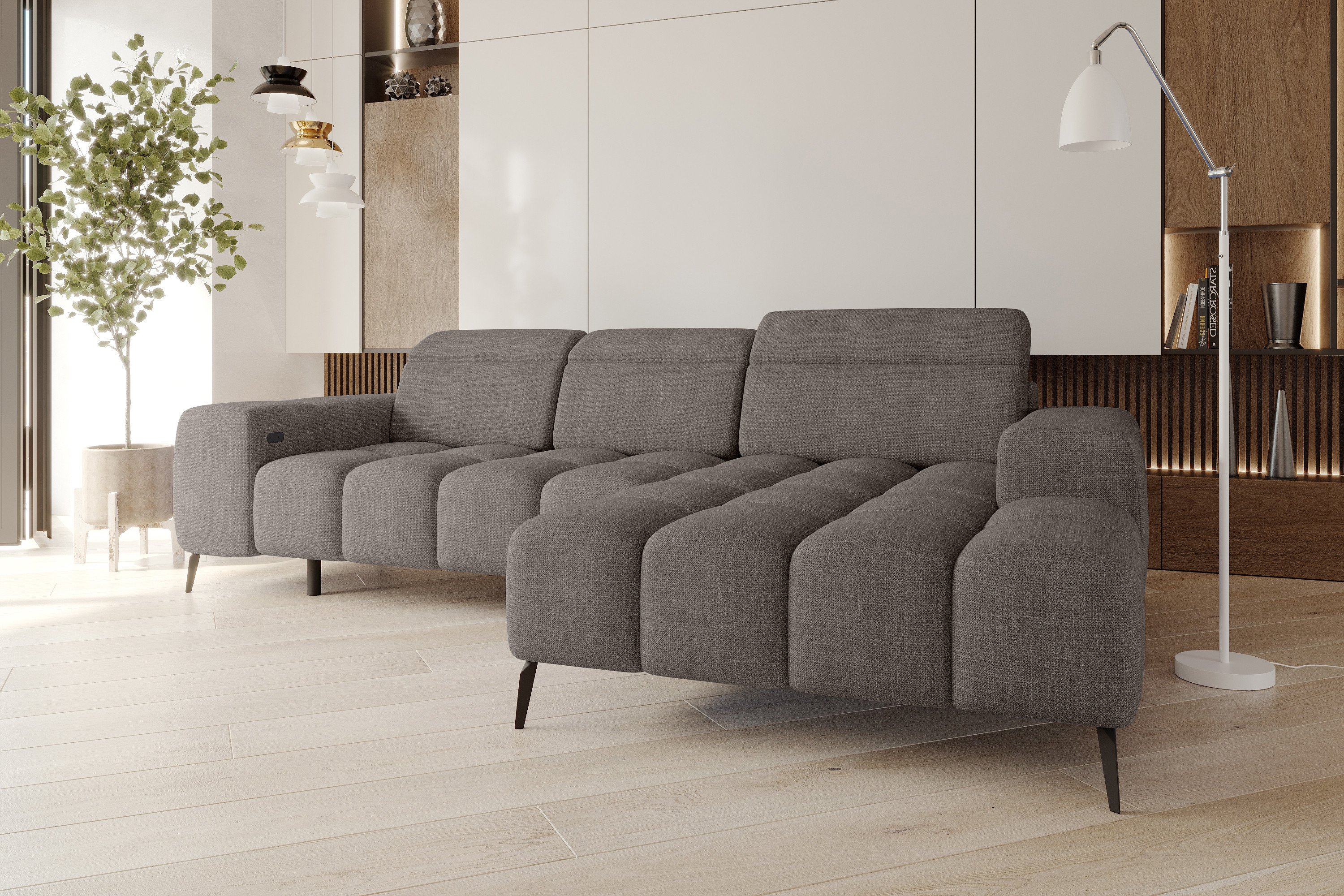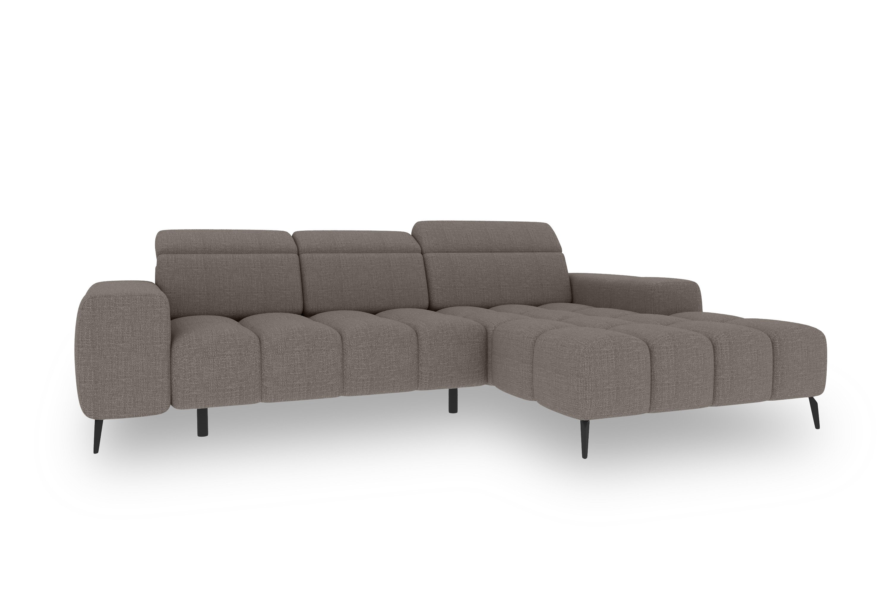 Das Ecksofa Kaya von BASTI dein Sofa ist das perfekte Statement-Piece für Wohnzimmer, in denen Design und Gemütlichkeit Hand in Hand gehen. Die markante Steppung in der Sitzpartie verleiht dem Sofa eine elegante Struktur, während die breiten Armlehnen Sicherheit und eine solide Optik vermitteln. Die Polstergarnitur ist ein wahres Multitalent: Mit der eingebauten Sitztiefenverstellung lässt sich per Knopfdruck die Sitzfläche vergrößern - für noch mehr Komfort beim Zurücklehnen oder Entspannen. Die manuelle Kopfteilverstellung ermöglicht es, die Sitz- sowie Liegeposition ganz individuell anzupassen, genau so, wie es für Sie gerade am bequemsten ist. Für ein punktelastisches Sitzgefühl sorgt die hochwertige Kaltschaumpolsterung auf einer Nosag-Wellenunterfederung, die auch nach Jahren formstabil bleibt. Die 15 cm hohen, dunklen Holzfüße sehen nicht nur edel aus, sondern sind auch extrem praktisch, denn Ihr Saugroboter kommt problemlos unter das Sofa, sodass Staub unter dem Polstermöbel keine Chance hat. In unseren Produktbildern glänzt Kaya im zeitlosen grauen Naturton - perfekt für einen harmonischen Skandi- oder Industrial-Look. Doch wer sagt, dass ein Sofa immer dezent sein muss? Wie unser Typenplan zeigt, ist die BASTI dein Sofa Eckgarnitur Kaya auch in mutigem Pink oder anderen kräftigen Farben ein absoluter Blickfang. Sie entscheiden: Sanfte Ruheoase oder farbenfrohes Highlight?