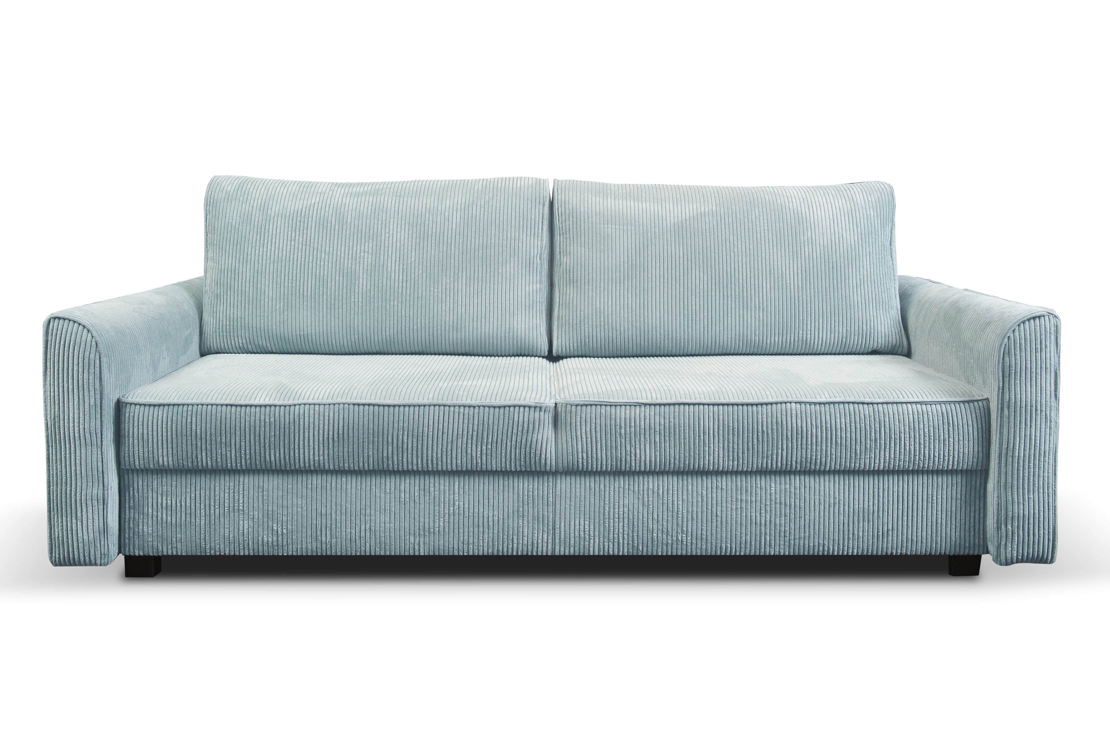 Schon beim ersten Betrachten strahlt das ca. 230 cm breite BENIX Sofa eine behagliche Optik sowie absolute Gemütlichkeit aus - Modell Astoria in einem angesagten Cordbezug. Das Gewand in einem frischen Mintton verleiht dem Einzelsofa eine wunderbar weiche Haptik und setzt zudem einen stilvollen Akzent in Ihrem Zuhause. Außerdem harmoniert dieser perfekt mit den schwarzen Kunststofffüßen, welche das moderne Design gekonnt unterstreichen. Der Bezug entspricht nicht ganz Ihren Vorstellungen? Mit einem Klick auf "Farbe ändern" erhalten Sie eine umfangreiche Stoffkollektion und so können Sie ihn problemlos nach Ihren Wünschen anpassen. Aber auch mit Funktionalität kann Astoria überzeugen: In Sekundenschnelle lässt sich die Sitzfläche nach vorn ausziehen und offenbart einen großzügigen Bettkasten, der genügend Stauraum für Decken, Kissen oder andere Alltagsutensilien bietet. Beim Runterklappen der Rückenlehne schenkt Ihnen der 2-Sitzer eine komfortable Liegefläche von etwa 196 x 148 cm, welche ausreichend Platz schenkt, um kuschelige Stunden mit dem Partner zu genießen oder den Gästen nach einem langen Abend eine Schlafmöglichkeit anzubieten. Astoria aus dem Hause BENIX Polstermöbel ist weit mehr als nur ein Möbelstück, es ist ein stilvoller Blickfang im Wohnzimmer und ein Ort zum Wohlfühlen, Verweilen und Träumen.