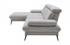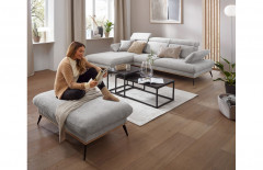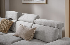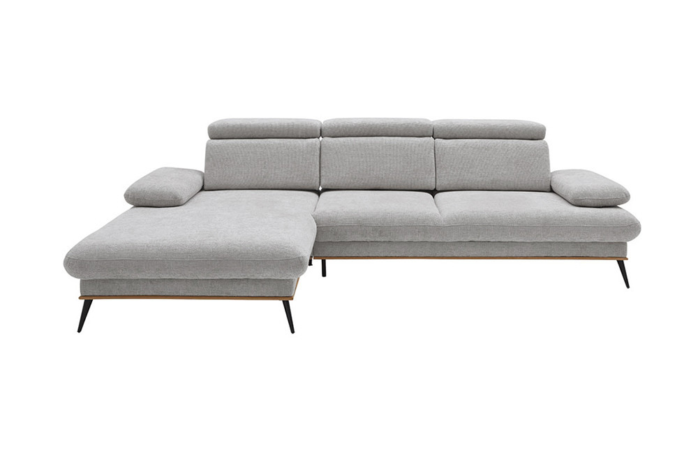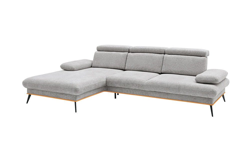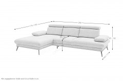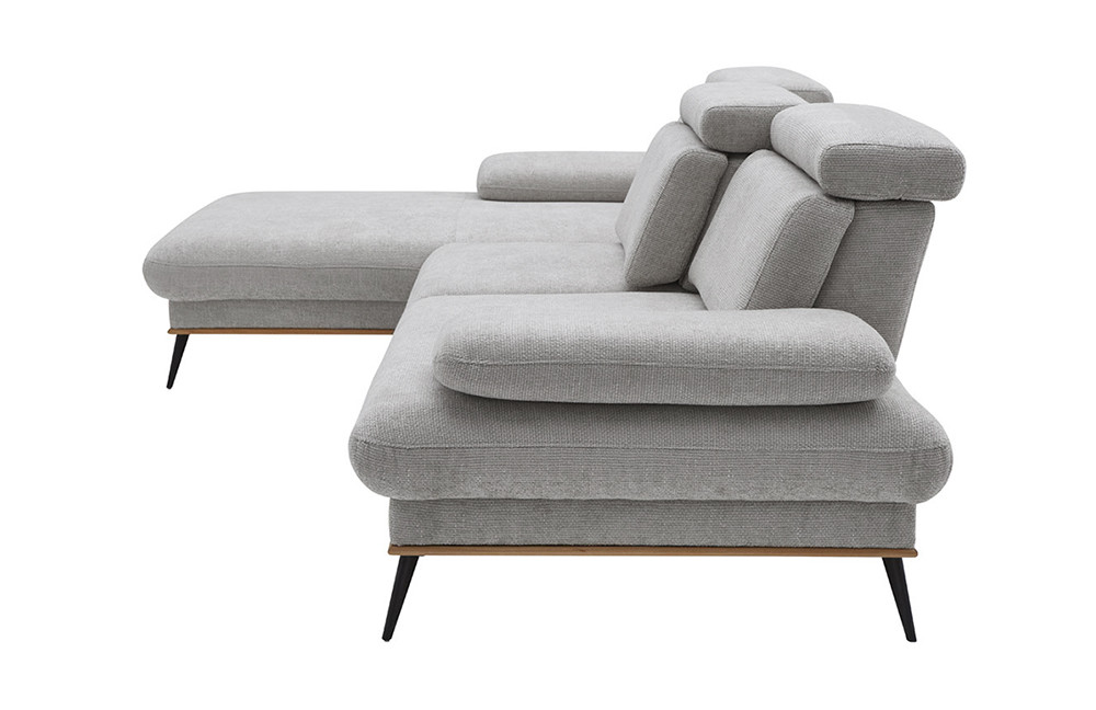 Tauchen Sie in eine Welt aus Stil, Geborgenheit und Raffinesse mit dem einzigartigen Polstersofa Santorini aus dem Hause BENIX Polstermöbel. Mit einem großzügigen Stellmaß von ca. 179-187 x 290 cm, welches sich aus einem Longchair sowie einem 2-Sitzer zusammensetzt, lädt diese Eckgarnitur dazu ein, den Alltag hinter sich zu lassen und pure Gemütlichkeit zu genießen. Das Gewand aus einem zeitlos grauen Chenille-Flachgewebe, die stilvolle Holzleiste sowie die formschönen, schwarzen Metallfüße verleihen der Polsterecke eine luxuriöse Ausstrahlung und setzen zugleich ein kraftvolles Statement in jedes Wohnambiente. Aber auch mit ihrer Polsterung sowie Funktionalität weiß Santorini zu überzeugen - der Schaumstoff auf einer Wellenunterfederung sowie die Kopfteil-, Armteil- plus Sitztiefenverstellung garantieren ein zauberhaftes Sitzerlebnis und sorgen für ein ewiges Wohlfühlen. Das Gesamtbild wird mit dem Hocker, welchen Sie optional in den Zusatzoptionen hinzubuchen können, perfekt abgerundet und bietet eine Möglichkeit zum Beinehochlegen oder dank der Sesselfunktion auch ein entspanntes Zurücklehnen. Nehmen Sie sich ein spannendes Buch zur Hand oder schalten Sie im Fernseher Ihre Lieblingssendung ein und erleben Sie erholsame Momente mit dem Ecksofa Santorini von BENIX.