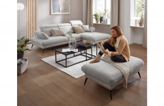 Tauchen Sie in eine Welt aus Stil, Geborgenheit und Raffinesse mit dem einzigartigen Polstersofa Santorini aus dem Hause BENIX Polstermöbel. Mit einem großzügigen Stellmaß von ca. 290 x 179-187 cm, welches sich aus einem 2-Sitzer sowie einem Longchair zusammensetzt, lädt diese Eckgarnitur dazu ein, den Alltag hinter sich zu lassen und pure Gemütlichkeit zu genießen. Das Gewand aus einem zeitlos grauen Chenille-Flachgewebe, die stilvolle Holzleiste sowie die formschönen, schwarzen Metallfüße verleihen der Polsterecke eine luxuriöse Ausstrahlung und setzen zugleich ein kraftvolles Statement in jedes Wohnambiente. Aber auch mit ihrer Polsterung sowie Funktionalität weiß Santorini zu überzeugen - der Schaumstoff auf einer Wellenunterfederung sowie die Kopfteil-, Armteil- plus Sitztiefenverstellung garantieren ein zauberhaftes Sitzerlebnis und sorgen für ein ewiges Wohlfühlen. Das Gesamtbild wird mit dem Hocker, welchen Sie optional in den Zusatzoptionen hinzubuchen können, perfekt abgerundet und bietet eine Möglichkeit zum Beinehochlegen oder dank der Sesselfunktion auch ein entspanntes Zurücklehnen. Nehmen Sie sich ein spannendes Buch zur Hand oder schalten Sie im Fernseher Ihre Lieblingssendung ein und erleben Sie erholsame Momente mit dem Ecksofa Santorini von BENIX.