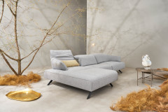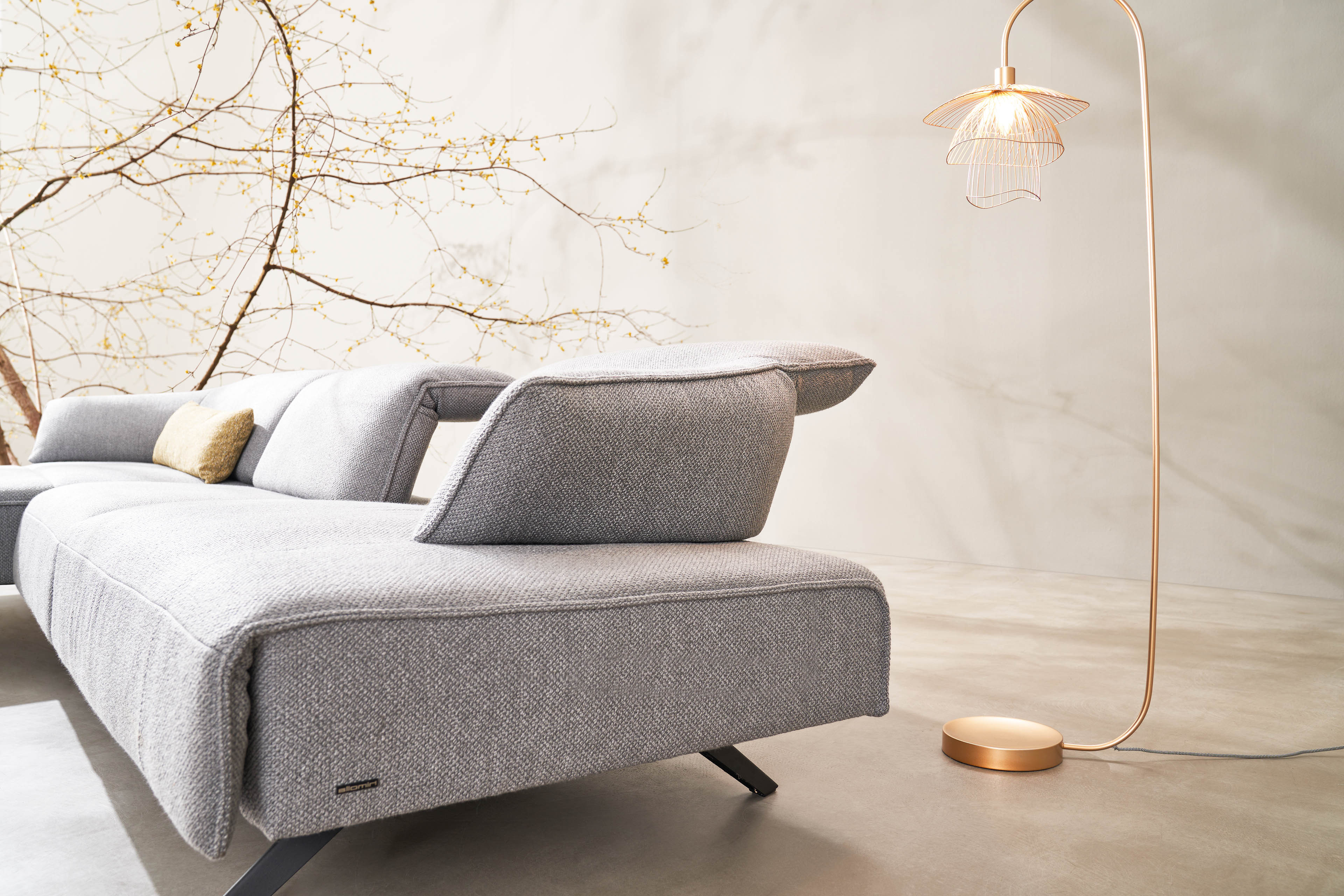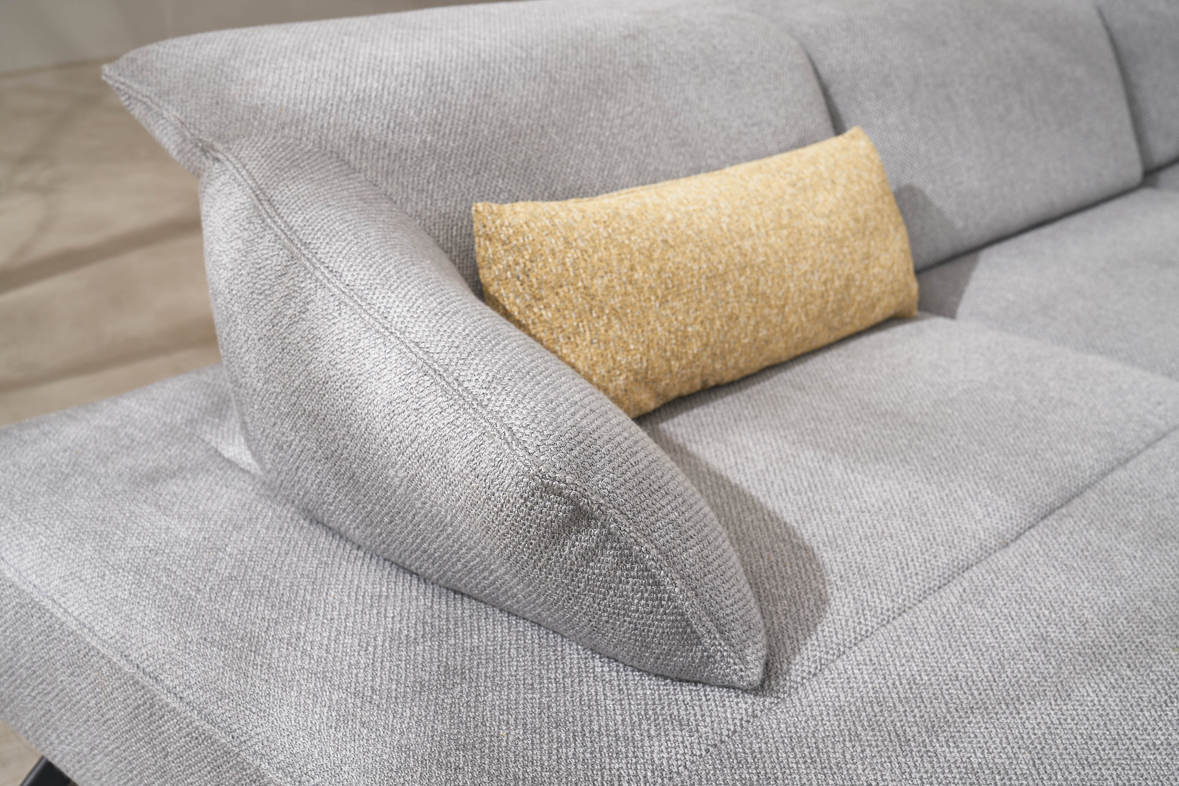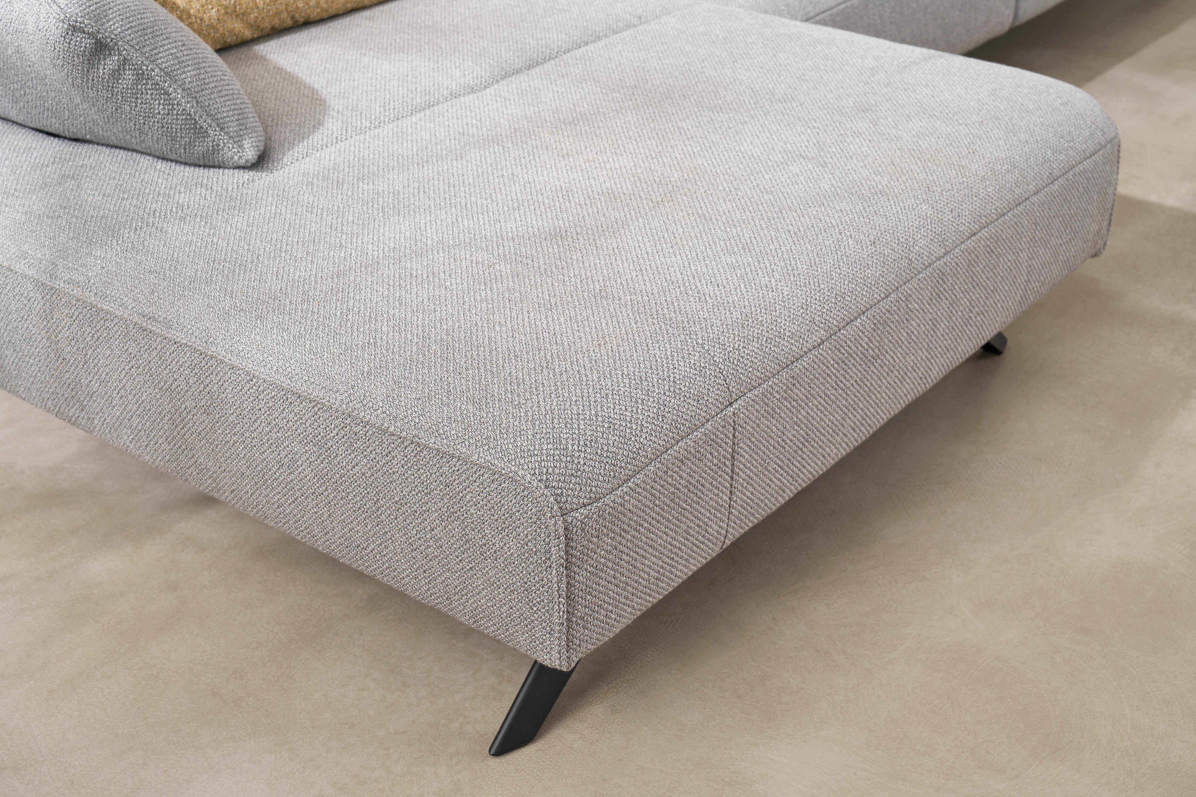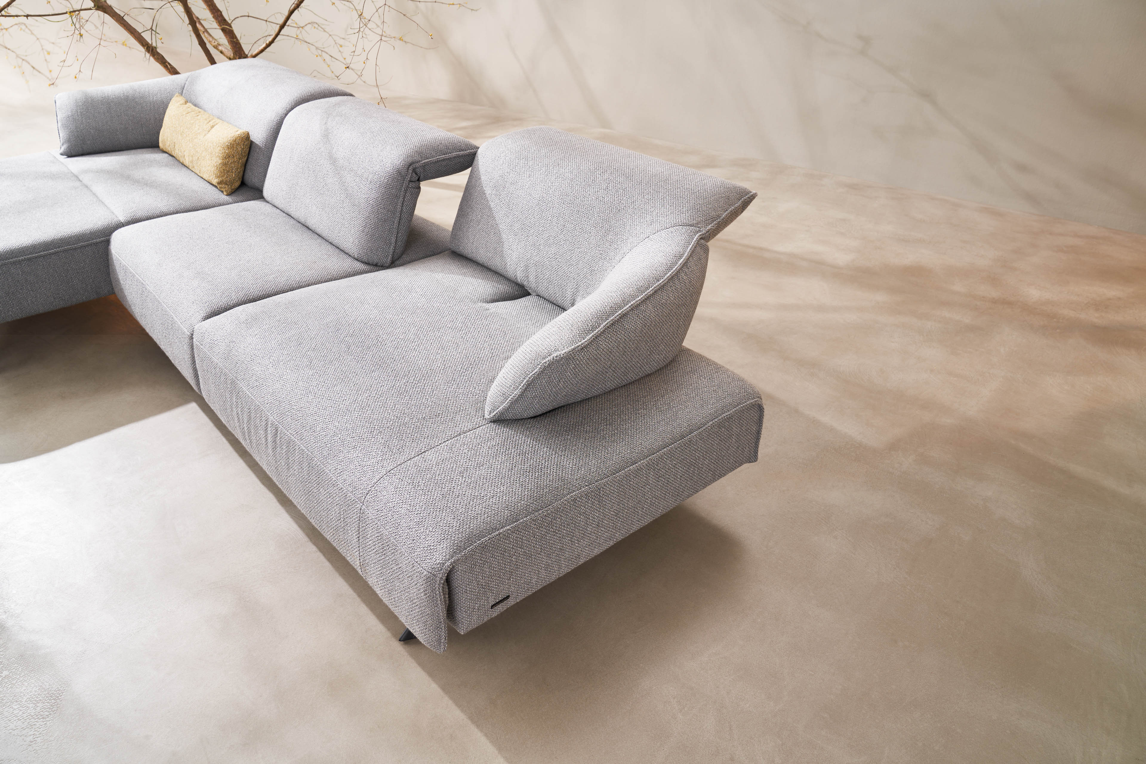 Relaxen Sie auf die elegante Art mit dem bezaubernden Modell 1052 von Himolla Polstermöbel. Die in einem hellgrauen Strukturstoff bezogene Polstergarnitur, die Ihnen in der Zusammenstellung aus einer Abschlussrecamiere sowie einem 3-Sitzer ein beachtliches Stellmaß von ca. 165 x 336 cm schenkt, entführt Sie sogar bereits ohne Extrafunktionen in himmlische Gefilde. Wohlige Formen und eine integrierte Kopfteilverstellung sorgen für ein unvergessliches Sitzerlebnis, welches Sie erholsam entspannen lässt. Die wählbare Polsterausführung von medium bis soft liefert Ihnen hierzu einen erstklassigen Komfort, der perfekt auf Sie abgestimmt ist. Einmal Platz genommen und Sie möchten das bequeme Sitzempfinden garantiert nicht mehr missen. Sie wollen noch luxuriöser vom Alltagstrubel abschalten? Dann statten Sie Ihr neues Ecksofa mit einer manuellen oder motorischen Sitztiefenverstellung aus, mit der Sie die Sitztiefe um ca. 28 cm variieren können, und wählen Sie für den 3-Sitzer eine elektrische Fußteilverstellung, bei der durch Bedienung des Kippschalters seitlich am Sitz die Fußauflage waagerecht nach oben fährt. Wunderbare Wohlfühlmomente sind mit diesem Sofa garantiert. Auf Wunsch lassen sich die motorischen Funktionen mit einem Akku ausrüsten, der eine kabellose Nutzung möglich macht und neben einer anderen Fußausführung sowie einer facettenreichen Bezugskollektion, um die Garnitur in einem anderen Gewand erstrahlen zu lassen, in unseren Zusatzoptionen zu finden ist. Gestalten Sie das hochwertige Himolla-Sofa ganz nach Ihren Vorstellungen und bereichern auch Sie Ihr heimisches Ambiente mit dem Modell 1052.