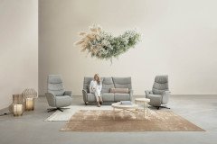 Flexibel, vielseitig und so gemütlich - das Trapezsofa 4050 von Himolla Polstermöbel. Dieser verführerische 3-Sitzer, bezogen in einem angesagten Echtledergewand im edlen Farbton "opal" sowie stehend auf einer anthrazitfarbenen Metallkufe, die zudem ausreichend Bodenfreiheit für einen Saugroboter lässt, lockt Sie nicht nur mit wohligen Formen, sondern auch mit innovativen Funktionen. Lehnen Sie sich zurück und geben Sie der Garnitur mit leichtem Körperdruck zu verstehen, was Sie wollen - Sie werden überrascht sein, wie schnell sie Ihre Wünsche erkennt sowie sich ohne Umwege in eine behagliche Komfortzone begibt. Dabei gehen Sitz, Rücken sowie Fußteil der beiden äußeren Plätze in eine entspannte Relaxposition, die Ihnen erholsame Augenblicke und die Möglichkeit verschafft, die Seele mal in aller Ruhe baumeln zu lassen - auf Wunsch auch mit motorischer Verstellung sowie mit zusätzlicher Aufstehhilfe für ein leichtes Erheben aus dem Sitz lieferbar. Ein weiteres Highlight ist der integrierte Tisch im Zwischenelement: Durch das Herunterklappen der Rückenlehne kommt eine praktische Ablage zum Vorschein, die dank der Holzfläche eine stabile Abstellmöglichkeit für Getränke oder kleine Snacks bereithält. Darüber hinaus können Sie mit einer vielfältigen Auswahl an Farben sowie Bezügen die Ledergarnitur auch optisch Ihren Vorstellungen näher bringen - Ihrer Gestaltungsfreiheit sind mit den facettenreichen Materialien und Nuancen keine Grenzen gesetzt. Ausgezeichnete Qualität und bester Komfort vereint in dem Himolla Heimkinosofa 4050.
