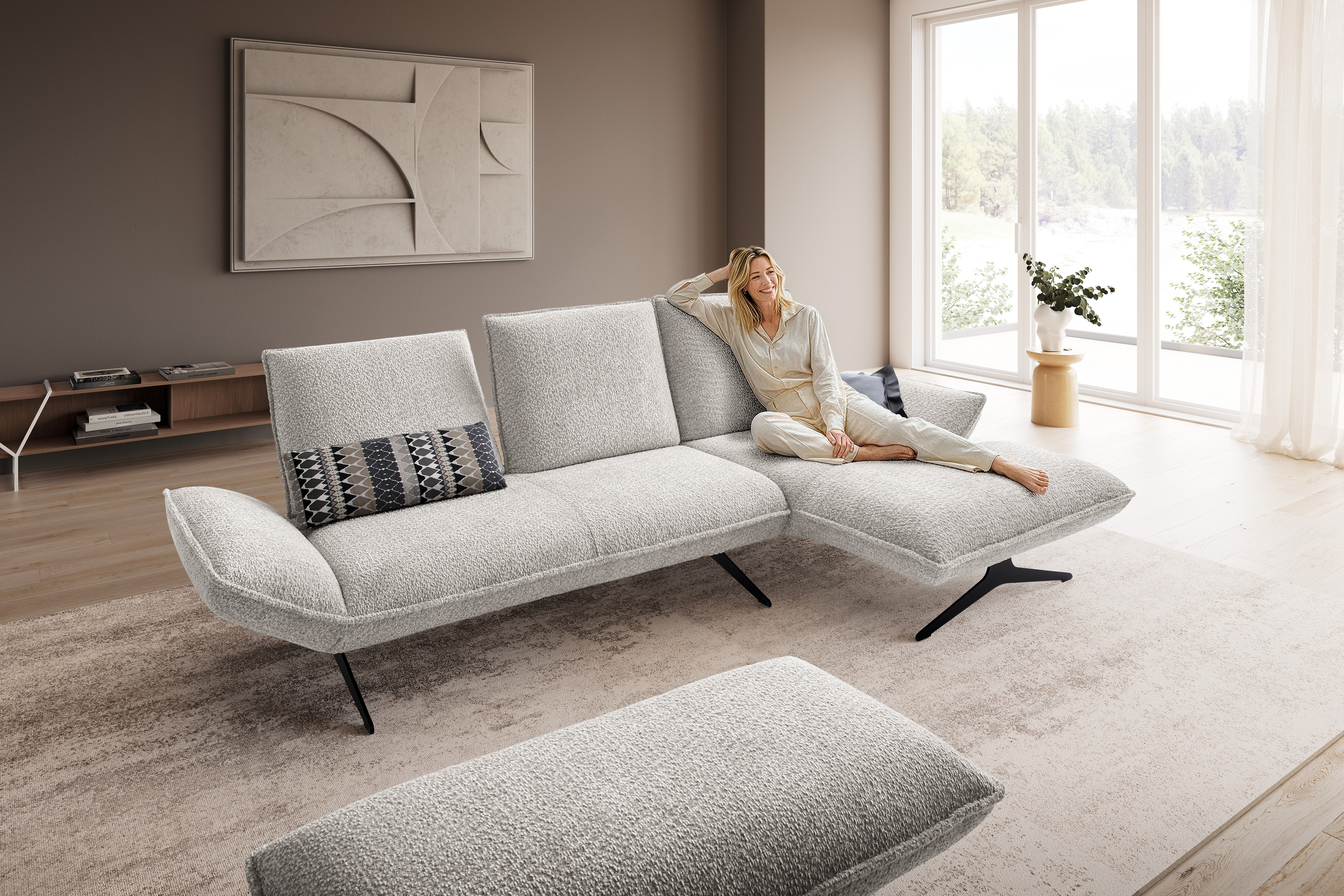 Sie haben Ihre neue Wohnung mit viel Liebe zum Detail eingerichtet und jetzt fehlt nur noch ein Möbelstück, das kompromisslosen Luxus mit vollendeter Entspannung vereint? Entdecken Sie Buddy - die Design-Ikone aus dem Hause KOINOR. Hier trifft meisterhafte Handwerkskunst auf urbane Ästhetik. Buddy fasziniert durch sein spannendes Spiel der Gegensätze: Klare, kubische Formen verschmelzen mit einladend voluminösen Polstern zu einem optischen Highlight. Gehüllt in ein attraktives Chenille-Flachgewebe im zeitlosen Grau strahlt dieses Ecksofa eine zeitlose Eleganz aus, die sich nahtlos in Ihr Interieur einfügt. Da auch der Rücken im gleichen Material bezogen ist, genießen Sie absolute architektonische Freiheit bei der Raumgestaltung. Aber das KOINOR Sofa sieht nicht nur fantastisch aus, es fühlt sich auch, dank einer weichen Polsterung aus einem Polyschaum, so an. Der Rücken lässt sich manuell nach hinten verstellen, wodurch sich die Sitztiefe auf großzügige ca. 61 cm erweitert. Das ist kein einfaches Sitzen mehr - das ist Entspannung auf höchstem Niveau. Machen Sie keine Kompromisse, wenn es um Ihren Komfort geht. Kontaktieren Sie noch heute unsere Experten per Telefon, Mail oder Live-Chat für Ihre persönliche Wunschkonfiguration. Erleben Sie Design und Qualität Made in Germany - Buddy von KOINOR.